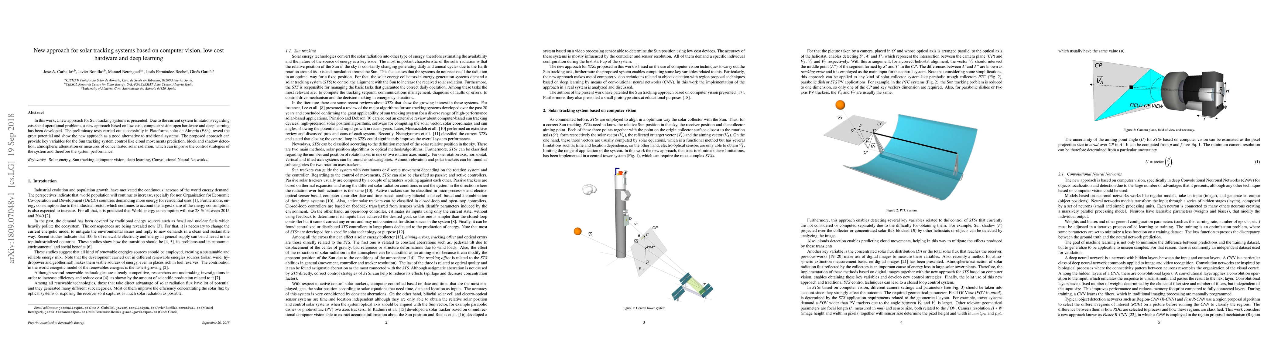 In this work, a new approach for Sun tracking systems is presented. Due to the current system limitations regarding costs and operational problems, a new approach based on low cost, computer vision open hardware and deep learning has been developed. The preliminary tests carried out successfully in Plataforma solar de Almeria (PSA), reveal the great potential and show the new approach as a good alternative to traditional systems. The proposed approach can provide key variables for the Sun tracking system control like cloud movements prediction, block and shadow detection, atmospheric attenuation or measures of concentrated solar radiation, which can improve the control strategies of the system and therefore the system performance.