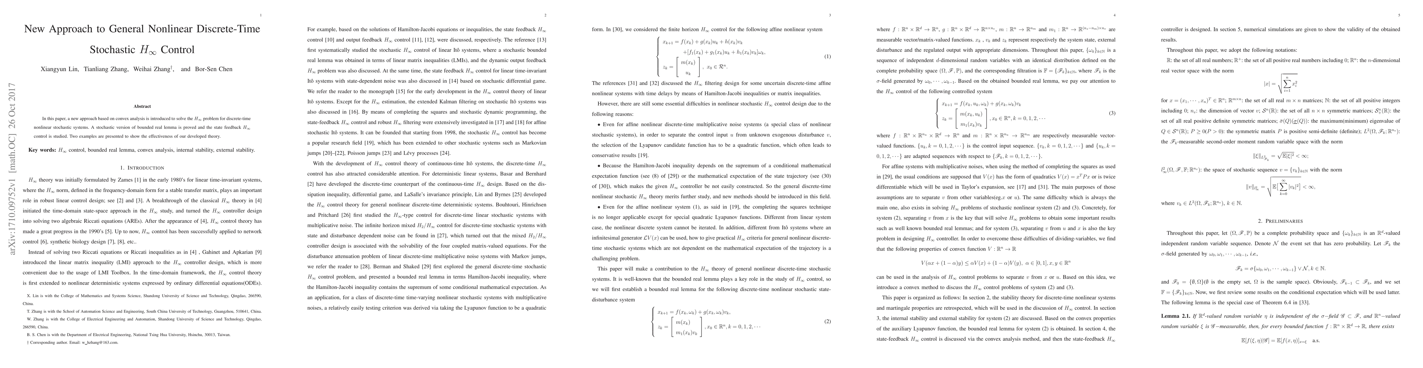 This paper introduces a convex analysis-based approach to solve the $H_\infty$ control problem for discrete-time nonlinear stochastic systems, proving a stochastic bounded real lemma and studying state feedback $H_\infty$ control. Two examples demonstrate the effectiveness of the proposed theory.