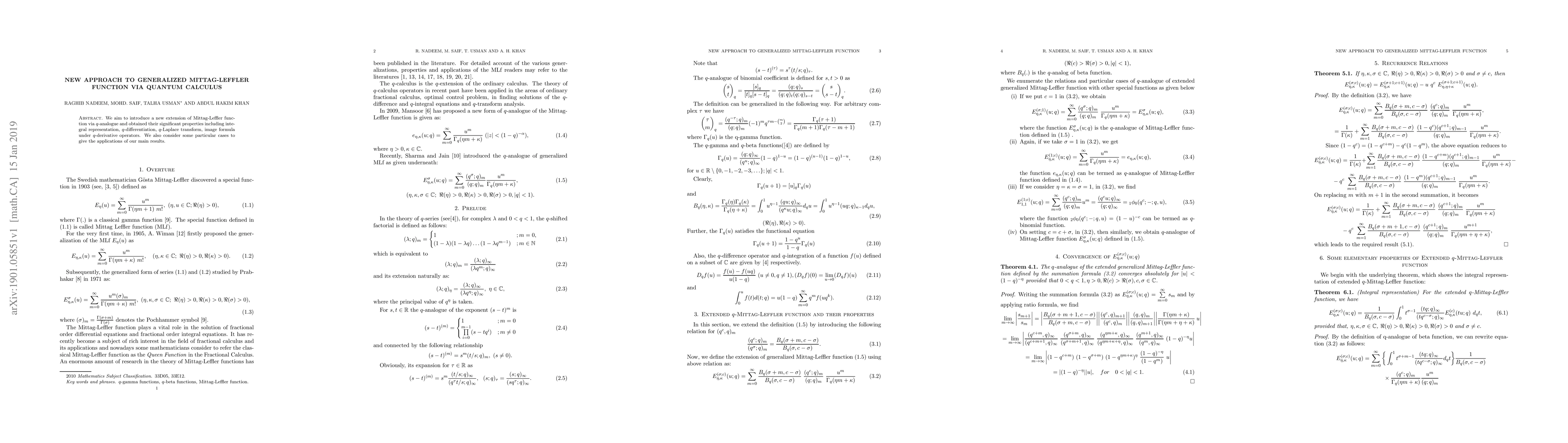 Researchers introduced a new extension of the Mittag-Leffler function using quantum calculus, exploring its properties and applications in integral representation, q-differentiation, and Laplace transform.