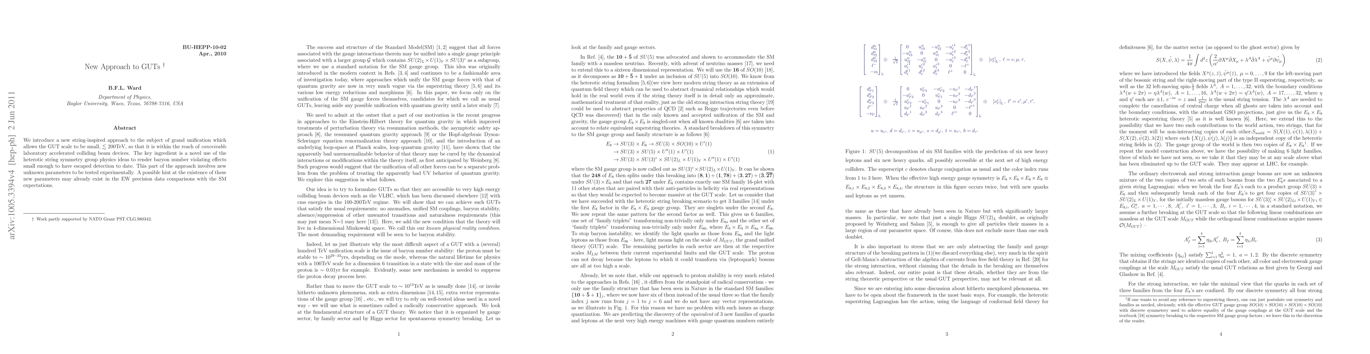 We introduce a new string-inspired approach to the subject of grand unification which allows the GUT scale to be small, \lesssim 200 TeV, so that it is within the reach of {\em conceivable} laboratory accelerated colliding beam devices. The key ingredient is a novel use of the heterotic string symmetry group physics ideas to render baryon number violating effects small enough to have escaped detection to date. This part of the approach involves new unknown parameters to be tested experimentally. A possible hint at the existence of these new parameters may already exist in the EW precision data comparisons with the SM expectations.
