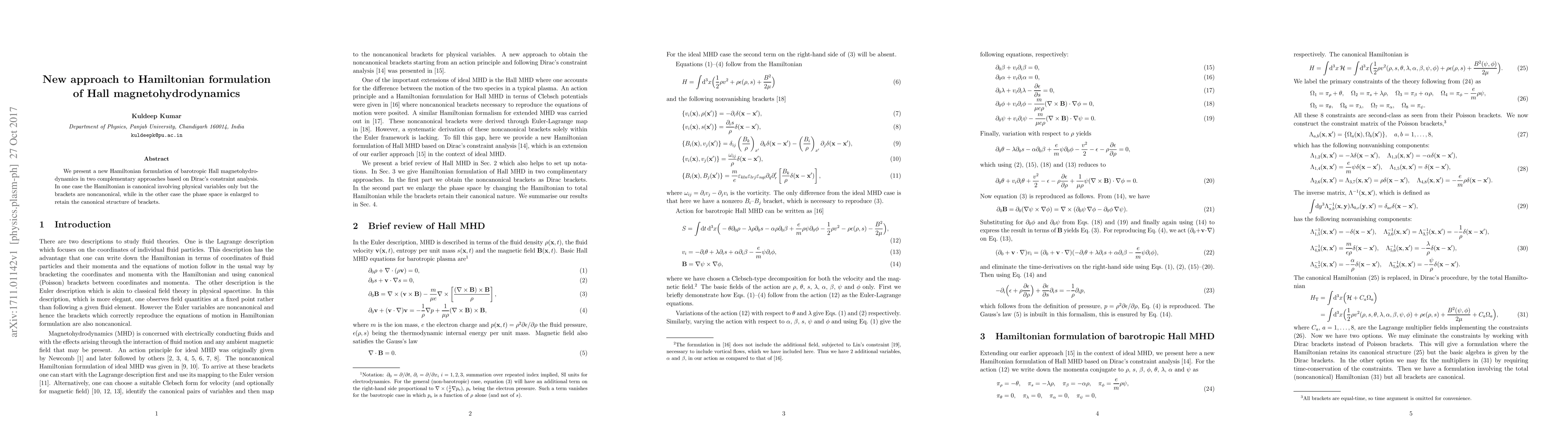 Researchers introduce a new Hamiltonian formulation for Hall magnetohydrodynamics, offering two approaches to retain canonical structure while dealing with barotropic systems.