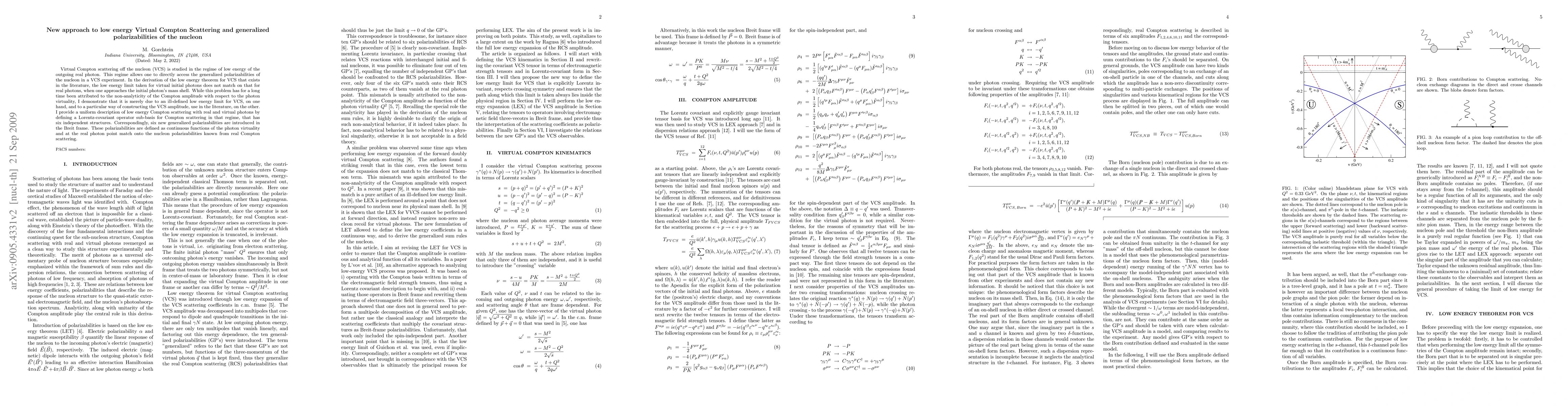 This paper explores low energy Virtual Compton Scattering (VCS) and introduces a new method to define generalized polarizabilities of the nucleon. It resolves discrepancies in the low energy limit for VCS by proposing a Lorentz-covariant operator sub-basis, leading to six new generalized polarizabilities that align with known nucleon polarizabilities at real photon scattering.