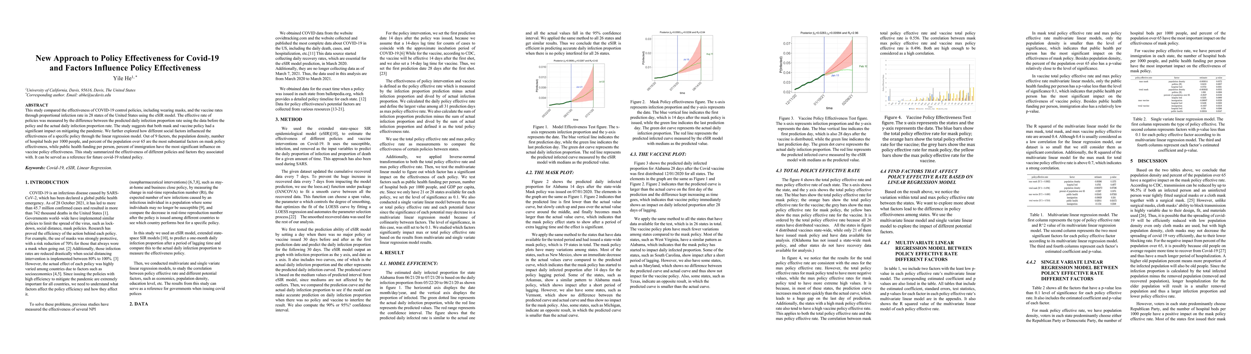 This study compared the effectiveness of COVID-19 control policies, including wearing masks, and the vaccine rates through proportional infection rate in 28 states of the United States using the eSIR model. The effective rate of policies was measured by the difference between the predicted daily infection proportion rate using the data before the policy and the actual daily infection proportion rate. The study suggests that both mask and vaccine policy had a significant impact on mitigating the pandemic. We further explored how different social factors influenced the effectiveness of a specific policy through the linear regression model. Out of 9 factors, the population density, number of hospital beds per 1000 people, and percent of the population over 65 are the most substantial factors on mask policy effectiveness, while public health funding per person, percent of immigration have the most significant influence on vaccine policy effectiveness. This study summarized the effectiveness of different policies and factors they associated with. It can be served as a reference for future covid-19 related policy.