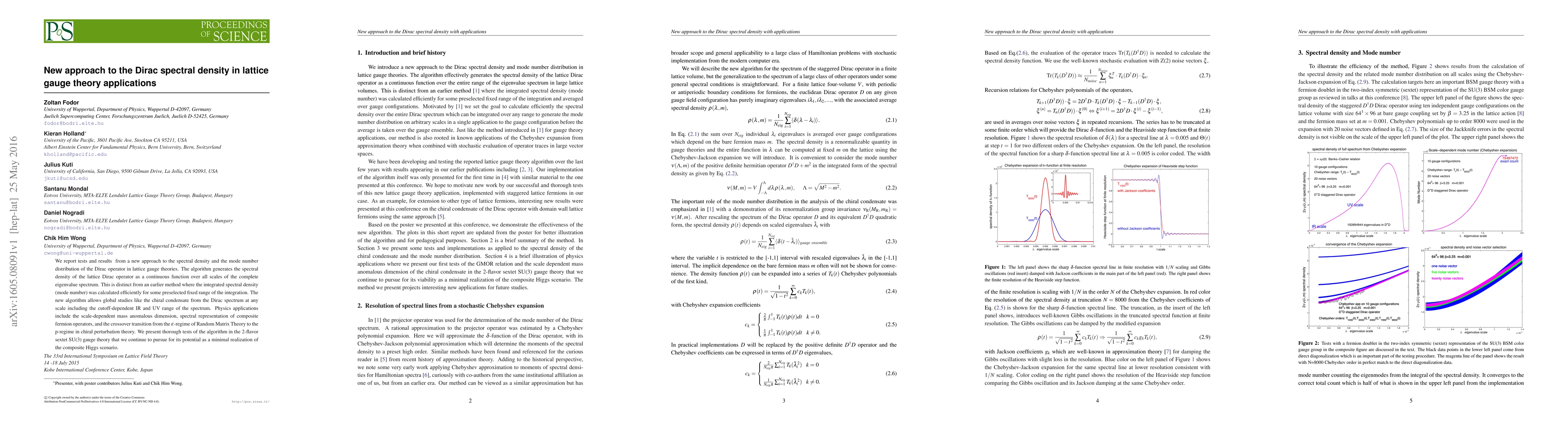 We report tests and results from a new approach to the spectral density and the mode number distribution of the Dirac operator in lattice gauge theories. The algorithm generates the spectral density of the lattice Dirac operator as a continuous function over all scales of the complete eigenvalue spectrum. This is distinct from an earlier method where the integrated spectral density (mode number) was calculated efficiently for some preselected fixed range of the integration. The new algorithm allows global studies like the chiral condensate from the Dirac spectrum at any scale including the cutoff-dependent IR and UV range of the spectrum. Physics applications include the scale-dependent mass anomalous dimension, spectral representation of composite fermion operators, and the crossover transition from the $\epsilon$-regime of Random Matrix Theory to the p-regime in chiral perturbation theory. We present thorough tests of the algorithm in the 2-flavor sextet SU(3) gauge theory that we continue to pursue for its potential as a minimal realization of the composite Higgs scenario.