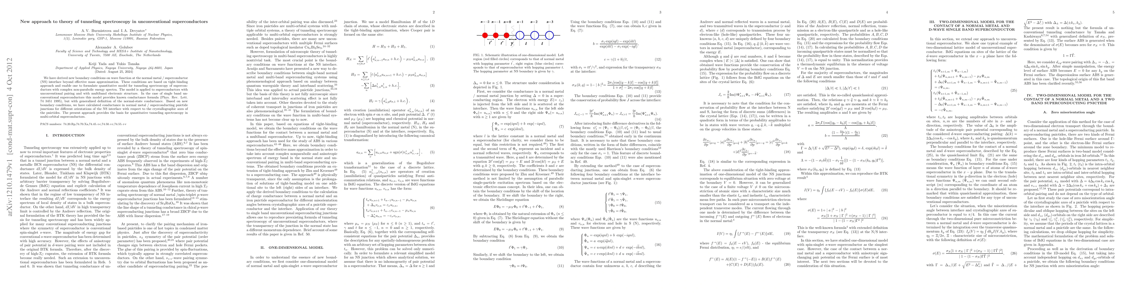 This paper introduces new boundary conditions for wave functions at the normal metal/superconductor interface, derived from a tight-binding approach, to model tunneling spectroscopy in unconventional superconductors. The model, applicable to multiband superconductors, generalizes the normal-state conductance and provides quantitative insights into pnictide junctions.