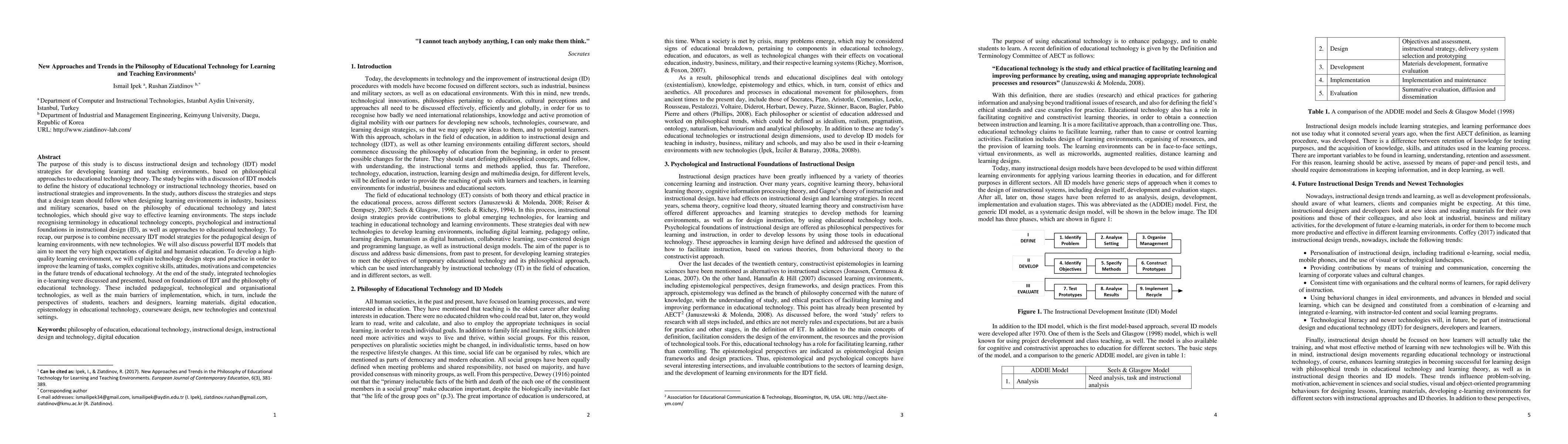 This study explores instructional design and technology (IDT) model strategies for creating effective learning environments, emphasizing the integration of philosophical approaches and the latest technologies. It outlines steps for design teams to follow, focusing on terminology, psychological foundations, and instructional design to enhance future educational technology.