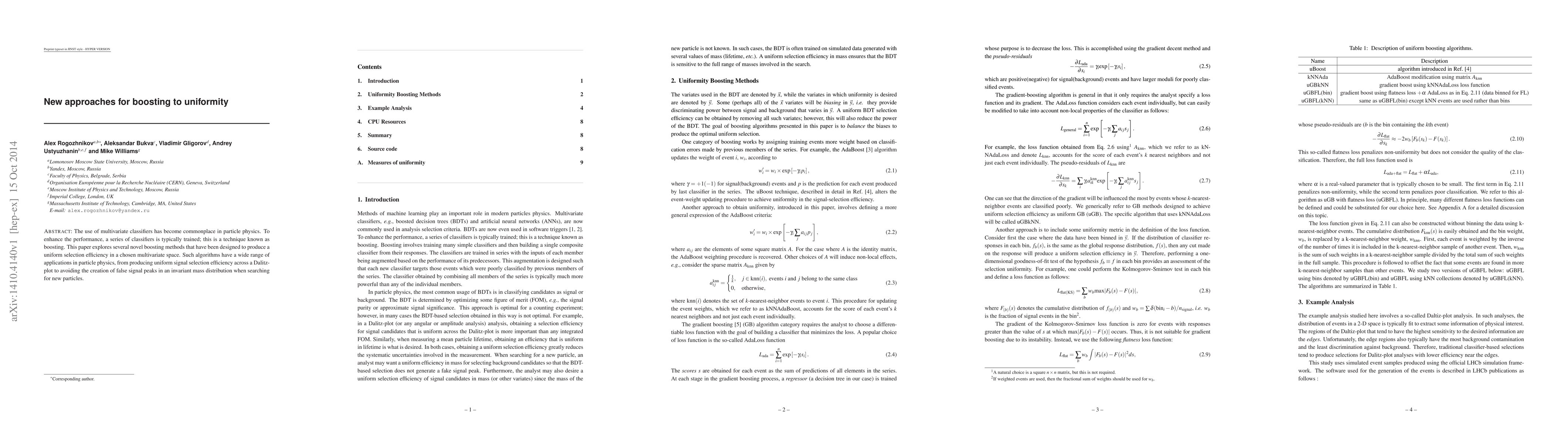 The use of multivariate classifiers has become commonplace in particle physics. To enhance the performance, a series of classifiers is typically trained; this is a technique known as boosting. This paper explores several novel boosting methods that have been designed to produce a uniform selection efficiency in a chosen multivariate space. Such algorithms have a wide range of applications in particle physics, from producing uniform signal selection efficiency across a Dalitz-plot to avoiding the creation of false signal peaks in an invariant mass distribution when searching for new particles.