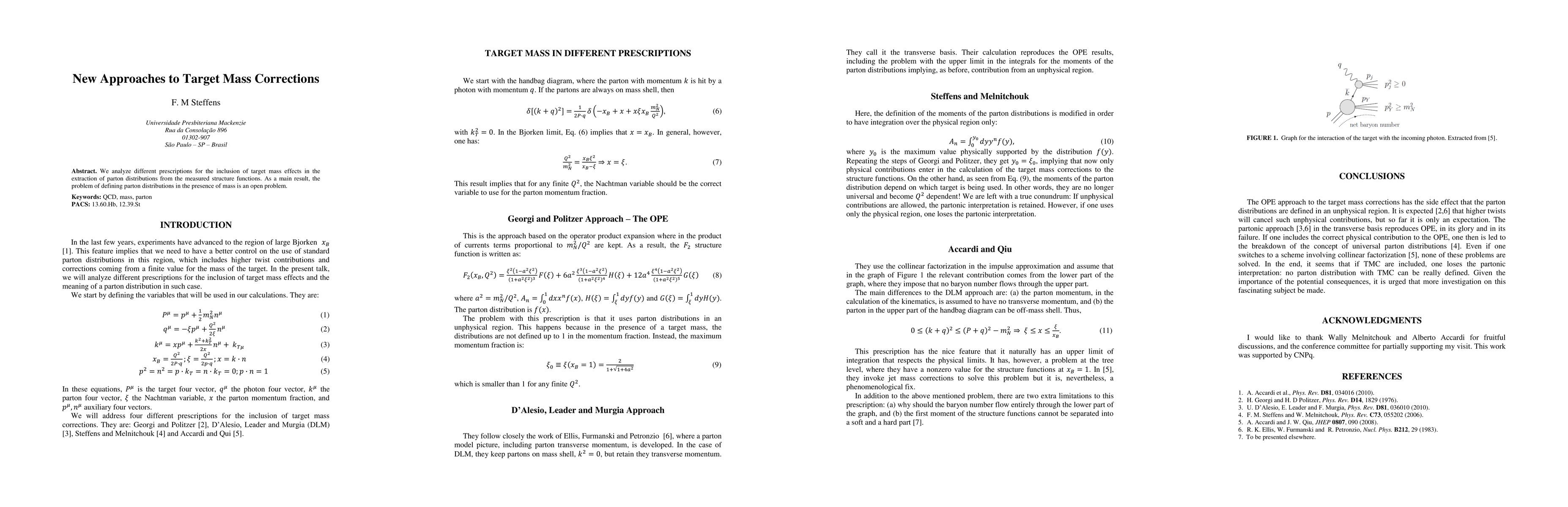 The research analyzed different prescriptions for including target mass effects in extracting parton distributions from measured structure functions.