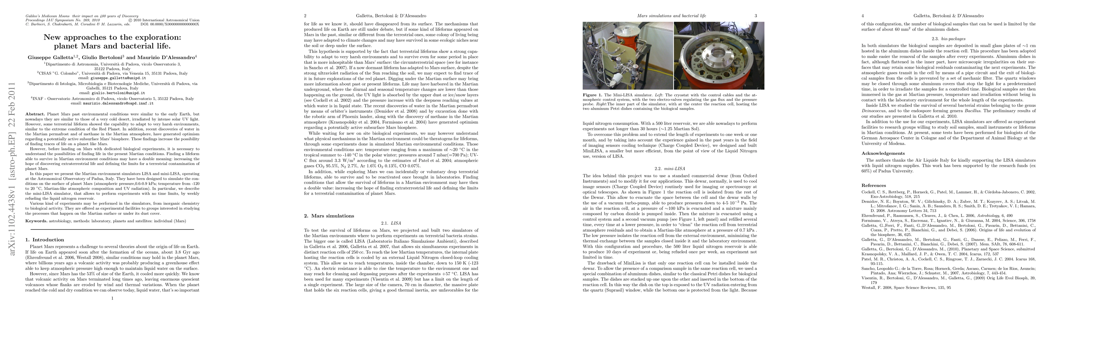 Planet Mars past environmental conditions were similar to the early Earth, but nowadays they are similar to those of a very cold desert, irradiated by intense solar UV light. However, some terrestrial lifeform showed the capability to adapt to very harsh environments, similar to the extreme condition of the Red Planet. In addition, recent discoveries of water in the Martian permafrost and of methane in the Martian atmosphere, have generated optimism regarding a potentially active subsurface Mars' biosphere. These findings increase the possibility of finding traces of life on a planet like Mars. However, before landing on Mars with dedicated biological experiments, it is necessary to understand the possibilities of finding life in the present Martian conditions. Finding a lifeform able to survive in Martian environment conditions may have a double meaning: increasing the hope of discovering extraterrestrial life and defining the limits for a terrestrial contamination of planet Mars. In this paper we present the Martian environment simulators LISA and mini-LISA, operating at the Astronomical Observatory of Padua, Italy. They have been designed to simulate the conditions on the surface of planet Mars (atmospheric pressure,0.6-0.9 kPa; temperature from -120 to 20 {\deg}C, Martian-like atmospheric composition and UV radiation). In particular, we describe the mini-LISA simulator, that allows to perform experiments with no time limits, by weekly refueling the liquid nitrogen reservoir. Various kind of experiments may be performed in the simulators, from inorganic chemistry to biological activity. They are offered as experimental facilities to groups interested in studying the processes that happen on the Martian surface or under its dust cover.