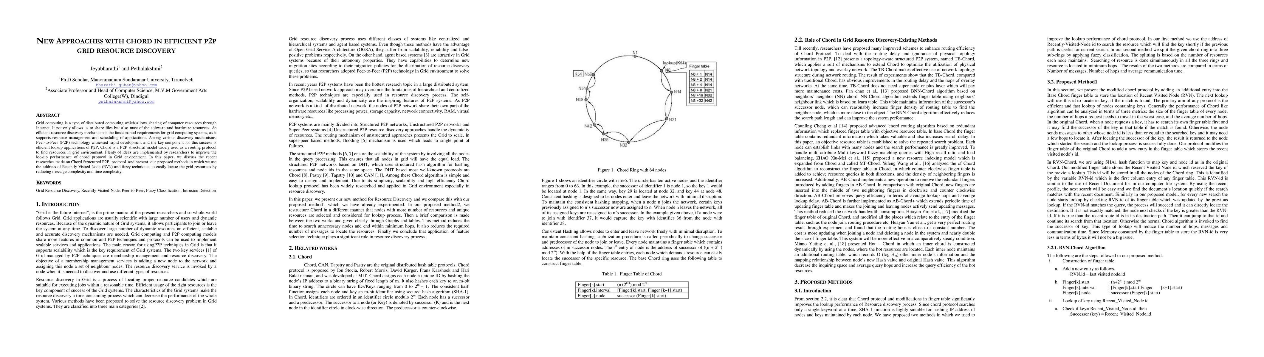 This paper explores recent advancements in Chord-based P2P grid resource discovery, emphasizing methods to enhance lookup efficiency. The authors propose a novel approach using Recently Visited Node addresses and fuzzy techniques to improve resource location while reducing message and time complexity.