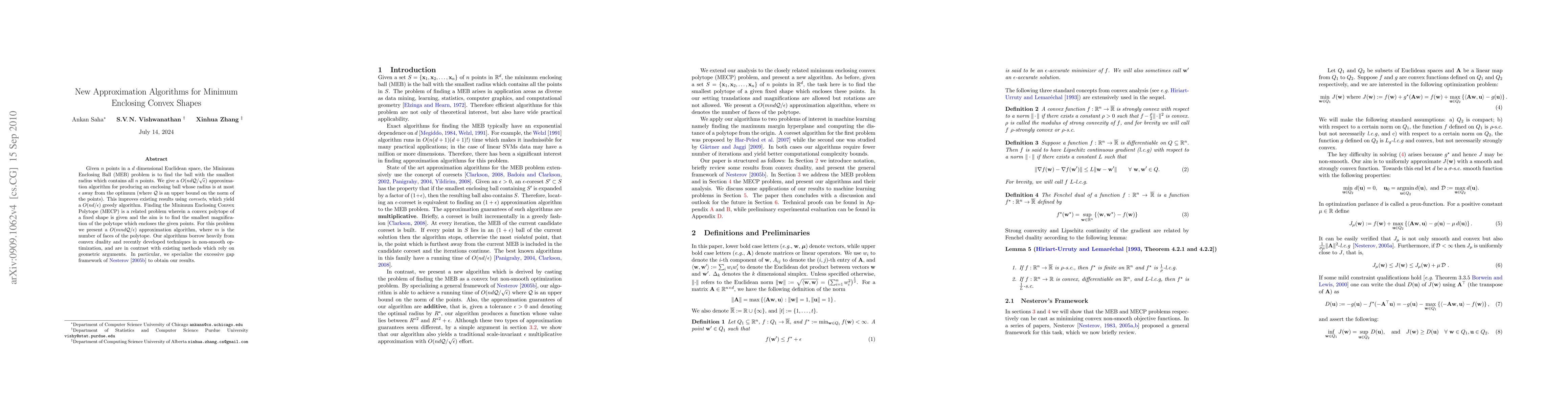 Researchers have developed approximation algorithms for finding minimum enclosing convex shapes in high-dimensional space, achieving improved efficiency with a focus on non-smooth optimization techniques.