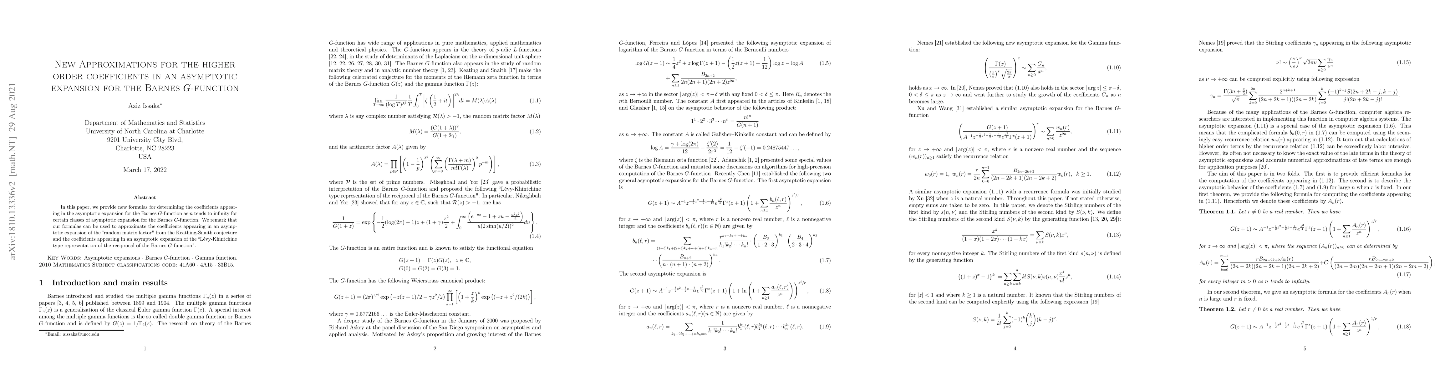 This paper introduces new formulas to approximate higher-order coefficients in the asymptotic expansion of the Barnes $G$-function, applicable to the Keathing-Snaith conjecture and the Lévy-Khintchine type representation of its reciprocal.