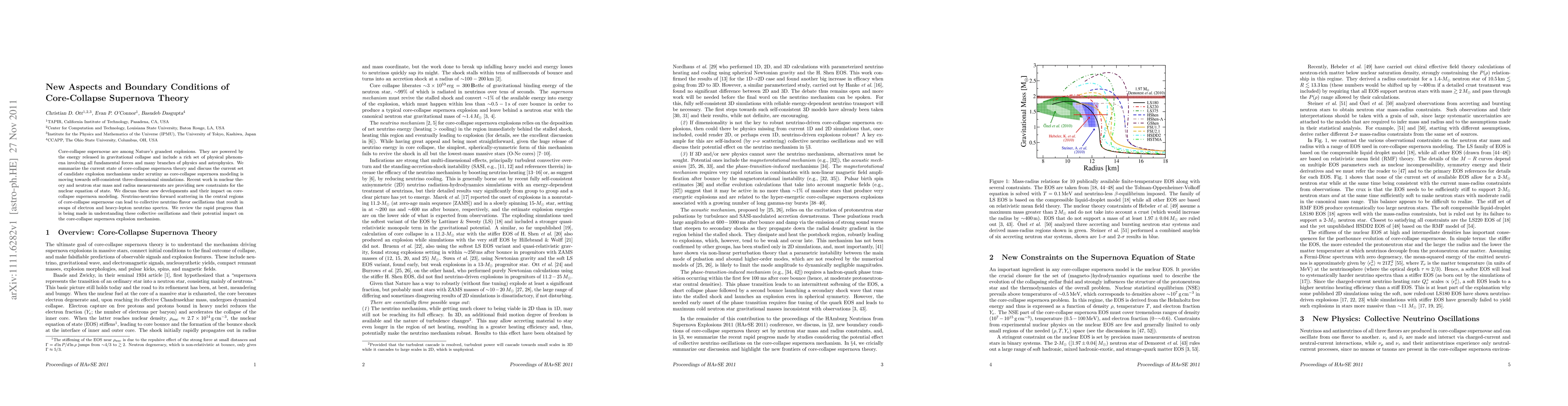 This paper reviews the current state of core-collapse supernova theory, focusing on new developments in nuclear theory and neutron star measurements that refine the nuclear equation of state. It also discusses the impact of collective neutrino flavor oscillations on supernova explosion mechanisms, highlighting the progress in three-dimensional simulations.