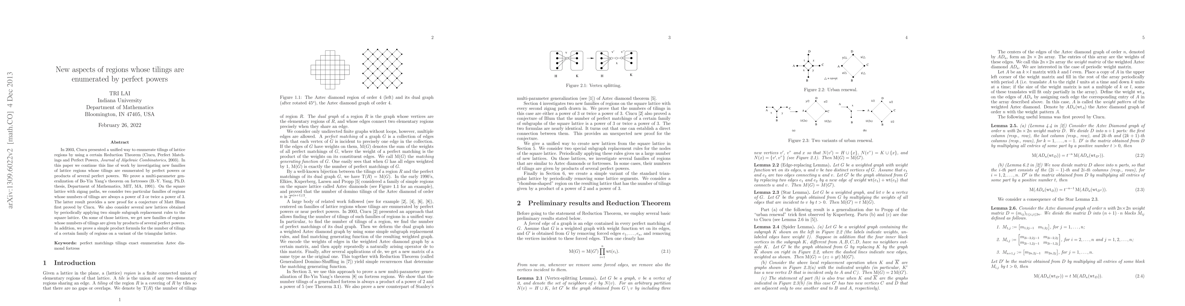 In 2003, Ciucu presented a unified way to enumerate tilings of lattice regions by using a certain Reduction Theorem (Ciucu, Perfect Matchings and Perfect Powers, Journal of Algebraic Combinatorics, 2003). In this paper we continue this line of work by investigating new families of lattice regions whose tilings are enumerated by perfect powers or products of several perfect powers. We prove a multi-parameter generalization of Bo-Yin Yang's theorem on fortresses (B.-Y. Yang, Ph.D. thesis, Department of Mathematics, MIT, MA, 1991). On the square lattice with zigzag paths, we consider two particular families of regions whose numbers of tilings are always a power of 3 or twice a power of 3. The latter result provides a new proof for a conjecture of Matt Blum first proved by Ciucu. We also consider several new lattices obtained by periodically applying two simple subgraph replacement rules to the square lattice. On some of those lattices, we get new families of regions whose numbers of tilings are given by products of several perfect powers. In addition, we prove a simple product formula for the number of tilings of a certain family of regions on a variant of the triangular lattice.