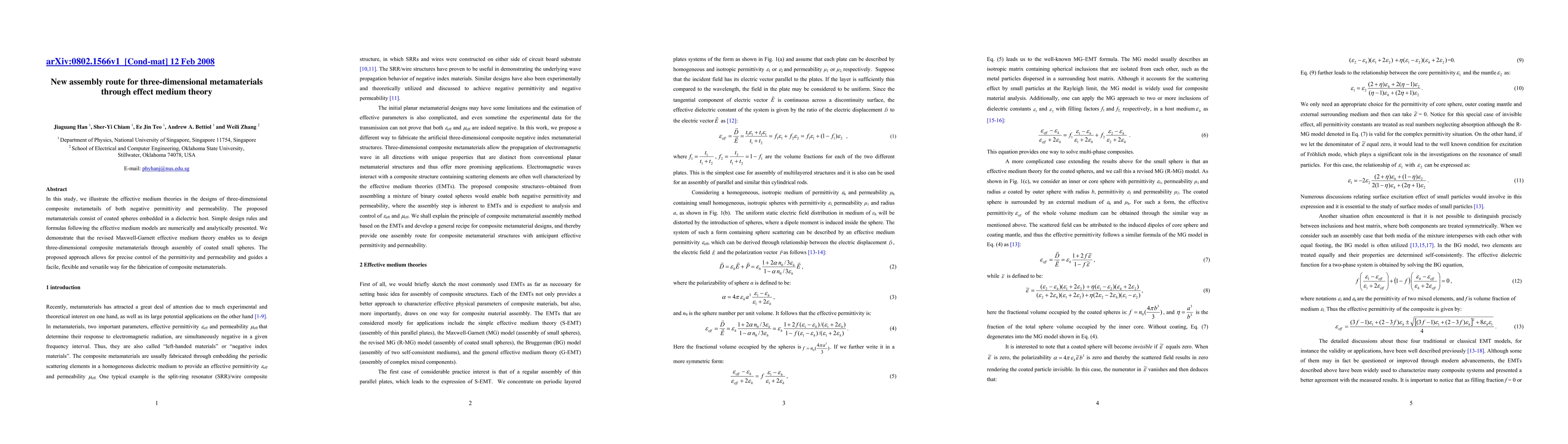 In this study, we illustrate the effective medium theories in the designs of three-dimensional composite metametails of both negative permittivity and permeability. The proposed metamaterials consist of coated spheres embedded in a dielectric host. Simple design rules and formulas following the effective medium models are numerically and analytically presented. We demonstrate that the revised Maxwell-Garnett effective medium theory enables us to design three-dimensional composite metamaterials through assembly of coated small spheres. The proposed approach allows for precise control of the permittivity and permeability and guides a facile, flexible and versatile way for the fabrication of composite metamaterials.