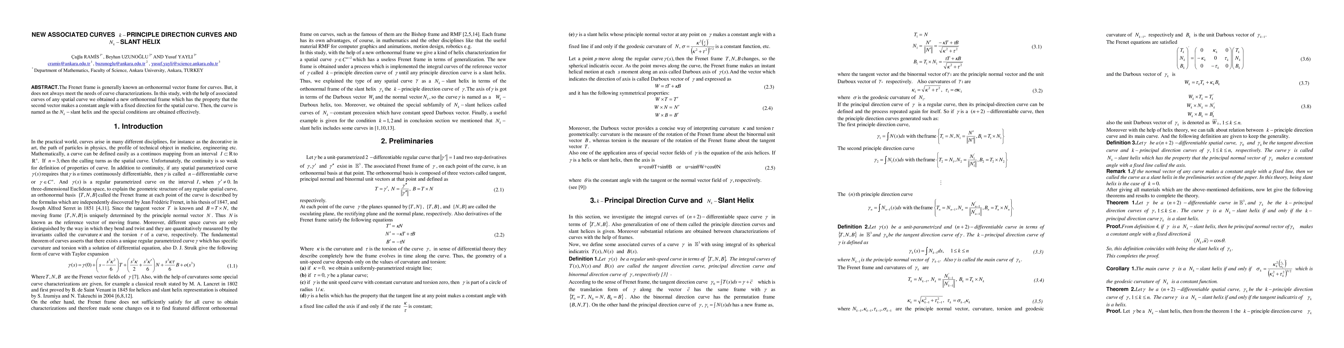 This paper introduces a new orthonormal frame for spatial curves based on associated curves, where the second vector maintains a constant angle with a fixed direction, leading to the definition of N_k slant helix curves. Special conditions characterizing these curves are effectively derived.