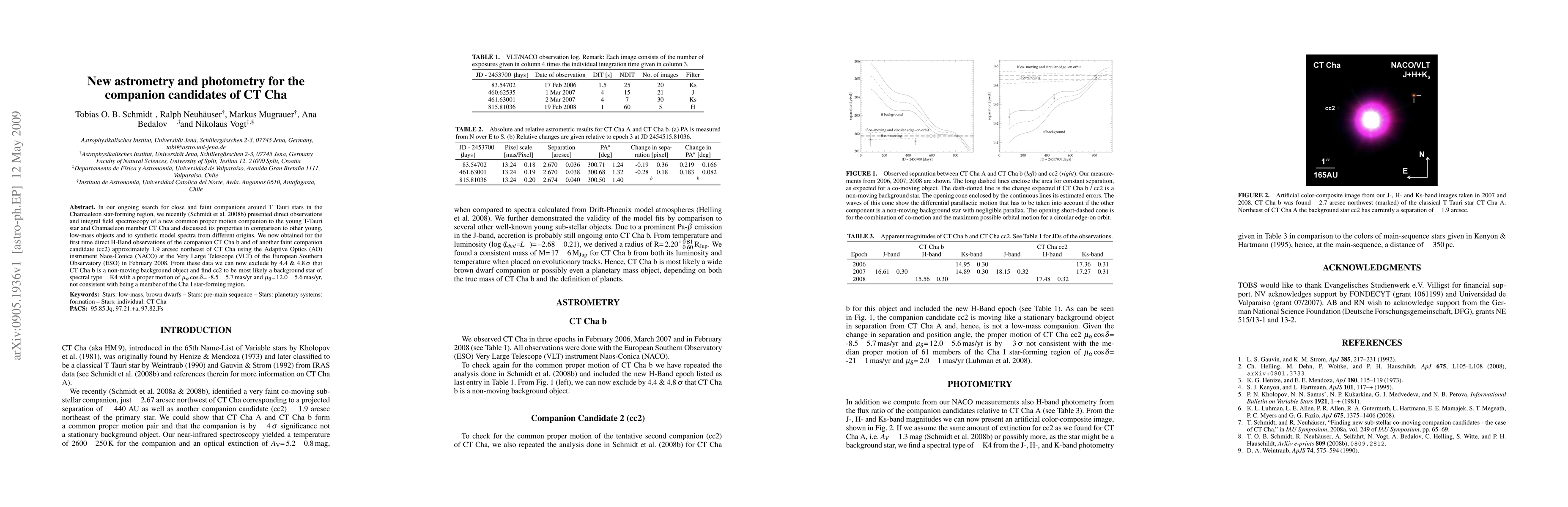This paper reports new astrometry and photometry for two companion candidates of CT Cha, a young T Tauri star in the Chamaeleon star-forming region, using Adaptive Optics observations. The study confirms CT Cha b as a likely physical companion, while cc2 is identified as a background star with no association to the Cha I region.