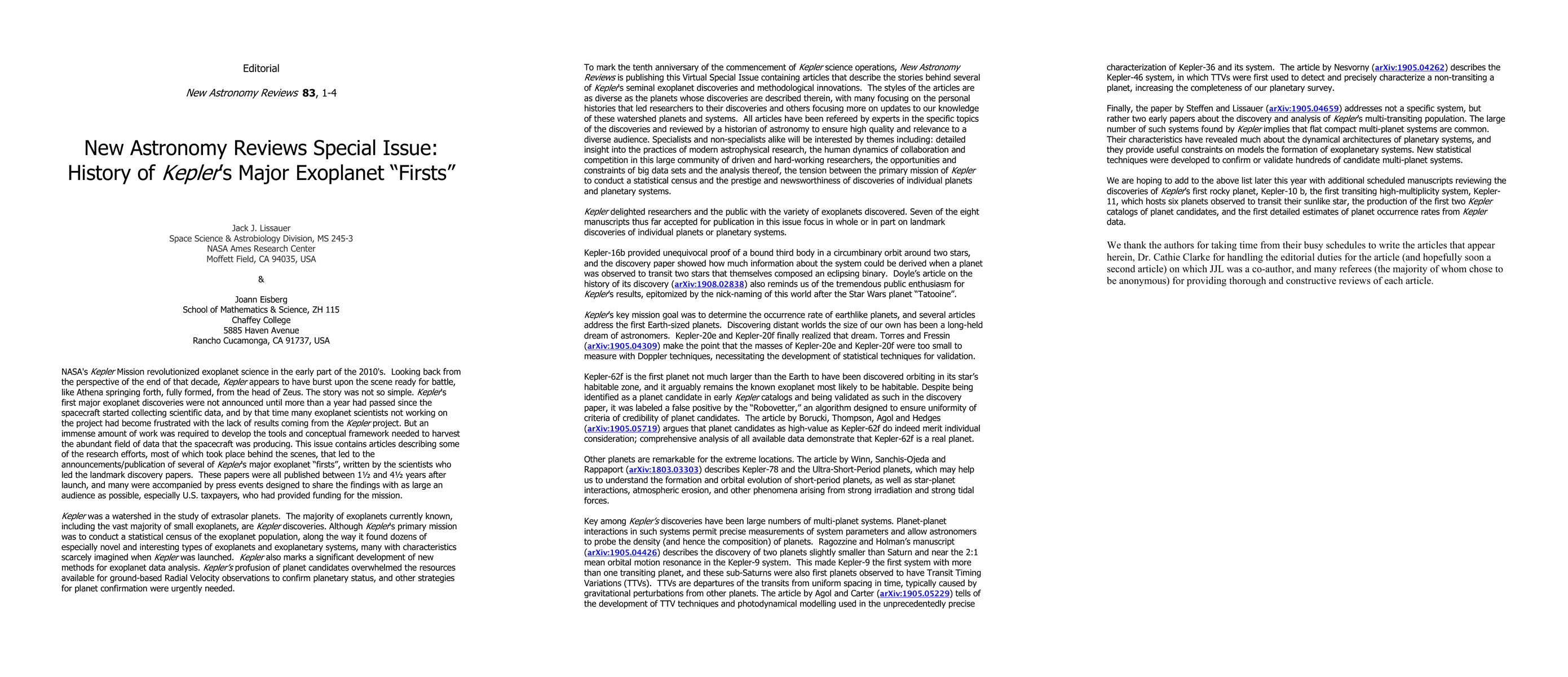 NASA's Kepler Mission revolutionized exoplanet science in the early part of the 2010's. Looking back from the perspective of the end of that decade, Kepler appears to have burst upon the scene ready for battle, like Athena springing forth, fully formed, from the head of Zeus. The story was not so simple. Kepler's first major exoplanet discoveries were not announced until more than a year had passed since the spacecraft started collecting scientific data, and by that time many exoplanet scientists not working on the project had become frustrated with the lack of results coming from the Kepler project. But an immense amount of work was required to develop the tools and conceptual framework needed to harvest the abundant field of data that the spacecraft was producing. This issue contains articles describing some of the research efforts, most of which took place behind the scenes, that led to the announcements/publication of several of Kepler's major exoplanet "firsts", written by the scientists who led the landmark discovery papers.