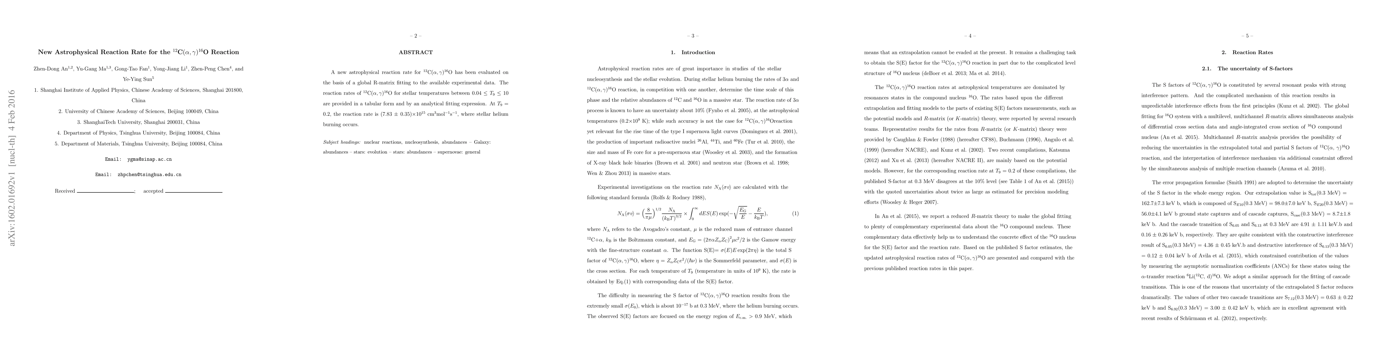 This paper presents a new astrophysical reaction rate for the $^{12}$C($\alpha,\gamma$)$^{16}$O reaction, derived through a global R-matrix fitting of experimental data. The reaction rates are provided for stellar temperatures ranging from 0.04 to 10 in tabular and analytical forms, with a rate of (7.83 $\pm$ 0.35)$\times10^{15}$ $\rm{cm^3 mol^{-1} s^{-1}}$ at $T_9$ = 0.2.