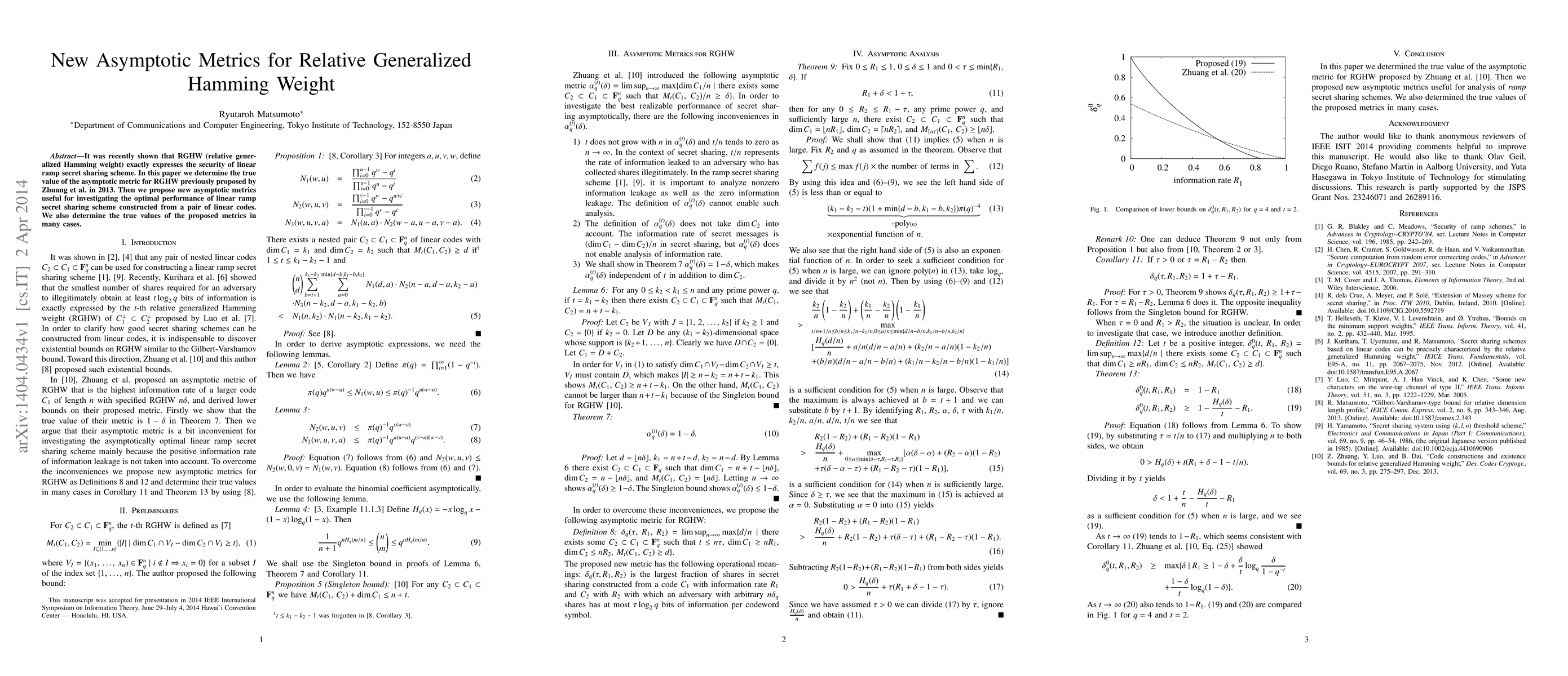 It was recently shown that RGHW (relative generalized Hamming weight) exactly expresses the security of linear ramp secret sharing scheme. In this paper we determine the true value of the asymptotic metric for RGHW previously proposed by Zhuang et al. in 2013. Then we propose new asymptotic metrics useful for investigating the optimal performance of linear ramp secret sharing scheme constructed from a pair of linear codes. We also determine the true values of the proposed metrics in many cases.