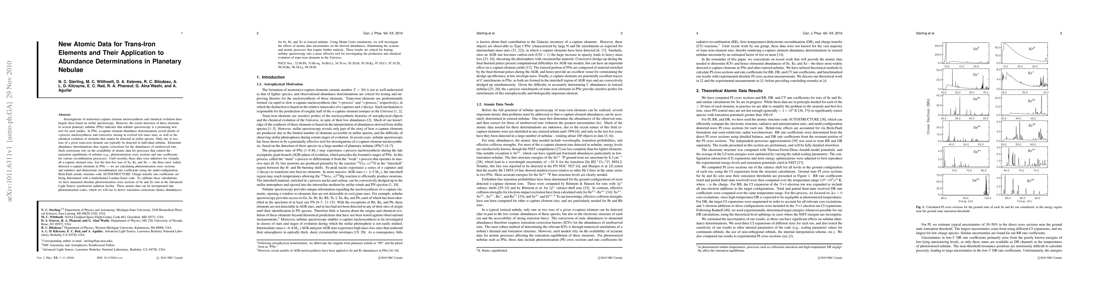 This paper presents new atomic data for trans-iron elements, specifically Se, Kr, and Xe, calculated using advanced atomic structure codes and measured at a synchrotron facility. These data are essential for refining the ionization corrections in planetary nebulae, thereby enhancing the understanding of nucleosynthesis and chemical evolution of these elements.
