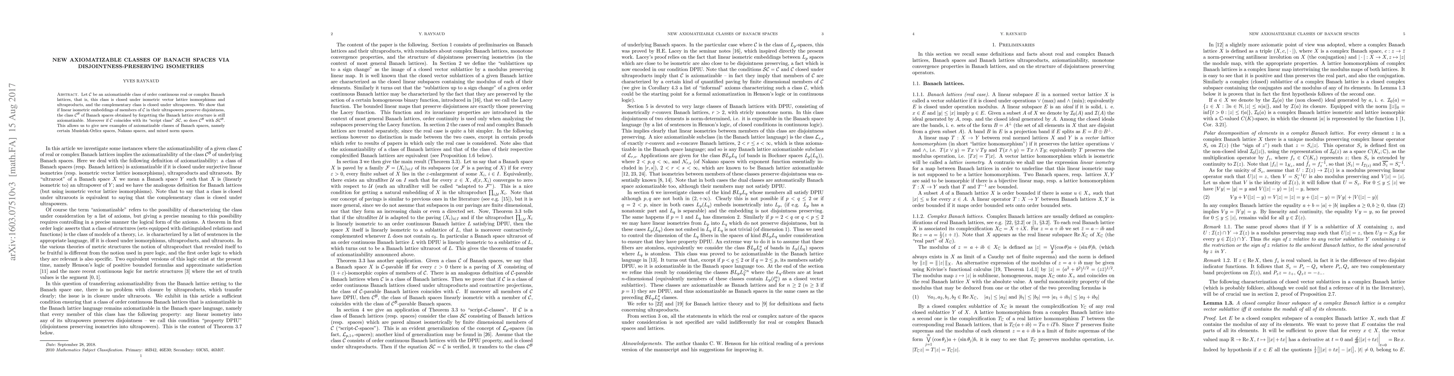 Let C be an axiomatizable class of order continuous real or complex Banach lattices, that is, this class is closed under isometric vector lattice isomorphisms and ultraproducts, and the complementary class is closed under ultrapowers. We show that if linear isometric embeddings of members of C in their ultrapowers preserve disjointness, the class C^B of Banach spaces obtained by forgetting the Banach lattice structure is still axiomatizable. Moreover if C coincides with its "script class" SC, so does C^B with SC^B. This allows us to give new examples of axiomatizable classes of Banach spaces, namely certain Musielak-Orlicz spaces, Nakano spaces, and mixed norm spaces.
