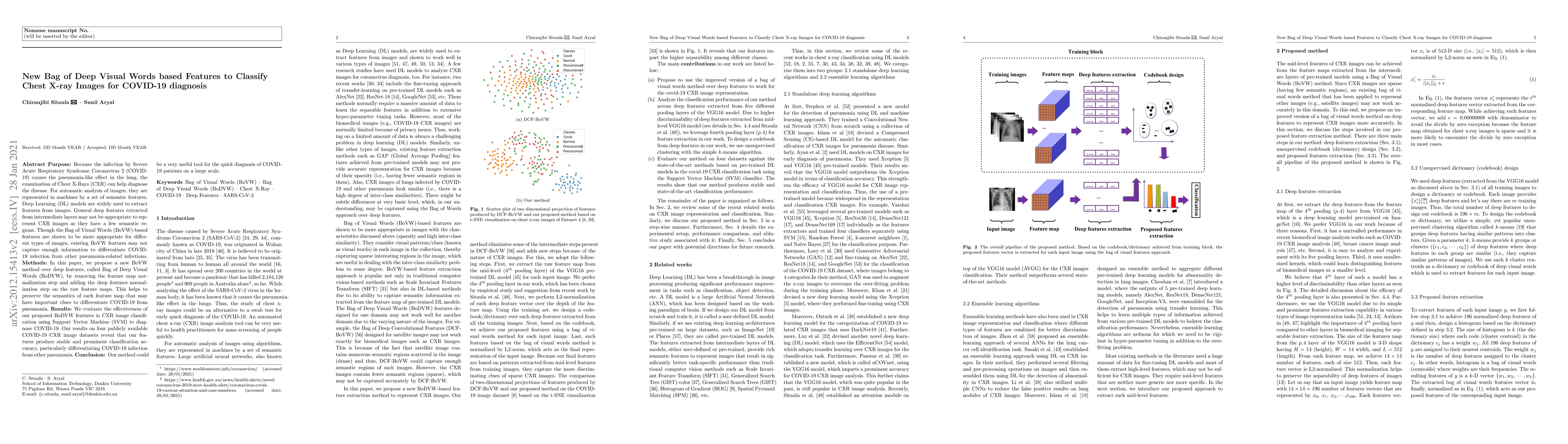 This paper proposes a new Bag of Deep Visual Words (BoDVW) method to enhance the classification of chest x-rays for COVID-19 diagnosis. The method improves upon traditional Bag of Visual Words by normalizing deep features, which better preserves semantic information to differentiate COVID-19 from other pneumonia types, achieving higher accuracy and efficiency compared to existing methods.
