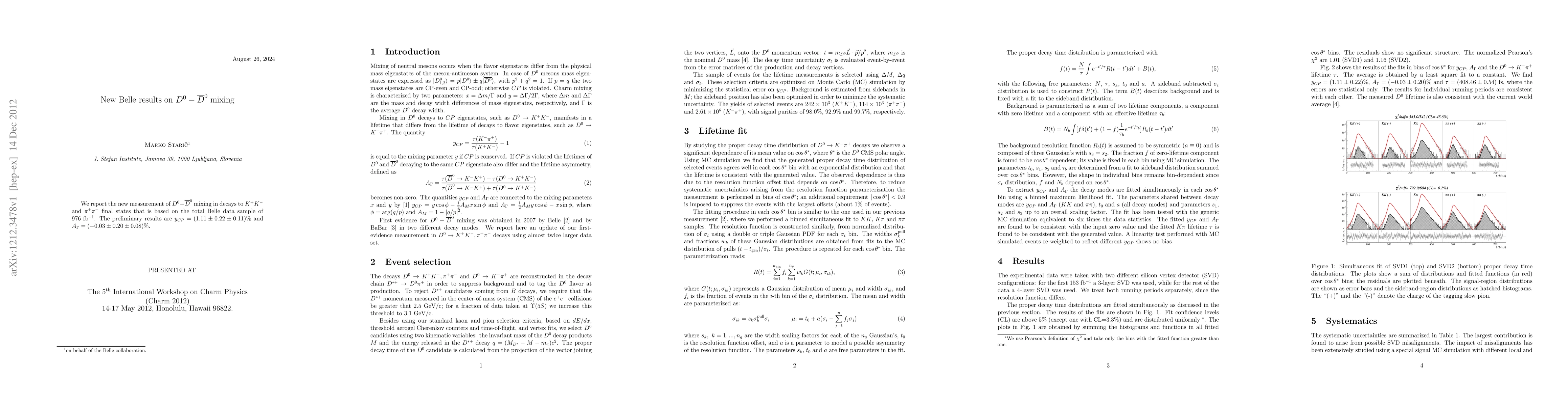 The Belle experiment reports new measurements of D0 - D0bar mixing in K+K- and pi+pi- decays, yielding preliminary results of y_CP = (1.11 ± 0.22 ± 0.11)% and A_Gamma = (-0.03 ± 0.20 ± 0.08)%. These findings are based on a data sample of 976/fb.