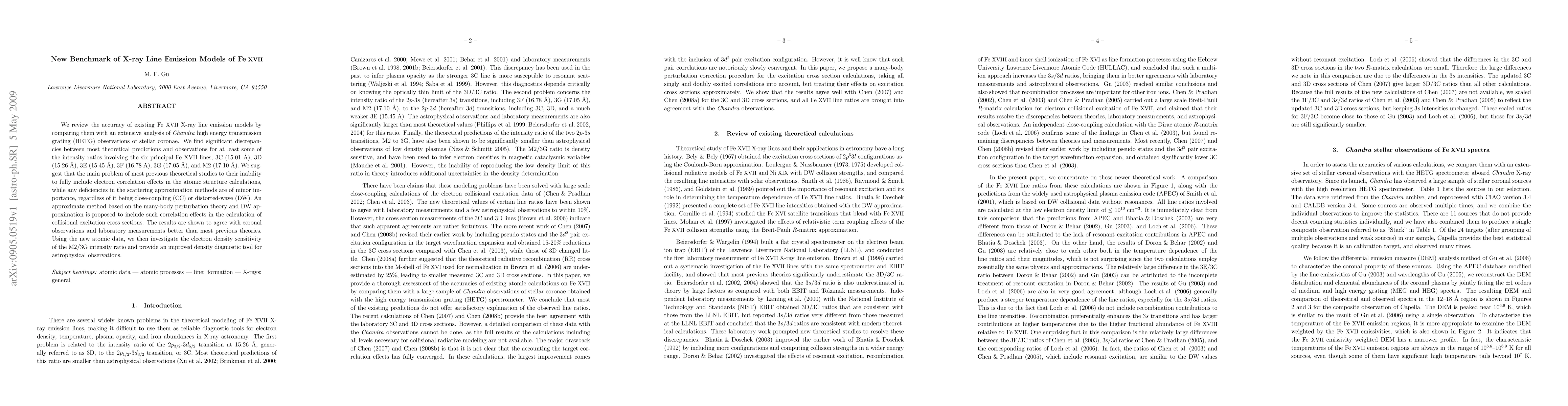 This paper reviews discrepancies in existing Fe XVII X-ray line emission models, finding that most fail to match observations due to insufficient electron correlation effects. A new method incorporating many-body perturbation theory and distorted-wave approximation is proposed, showing better agreement with observations and providing an improved diagnostic tool for electron density in astrophysical coronae.