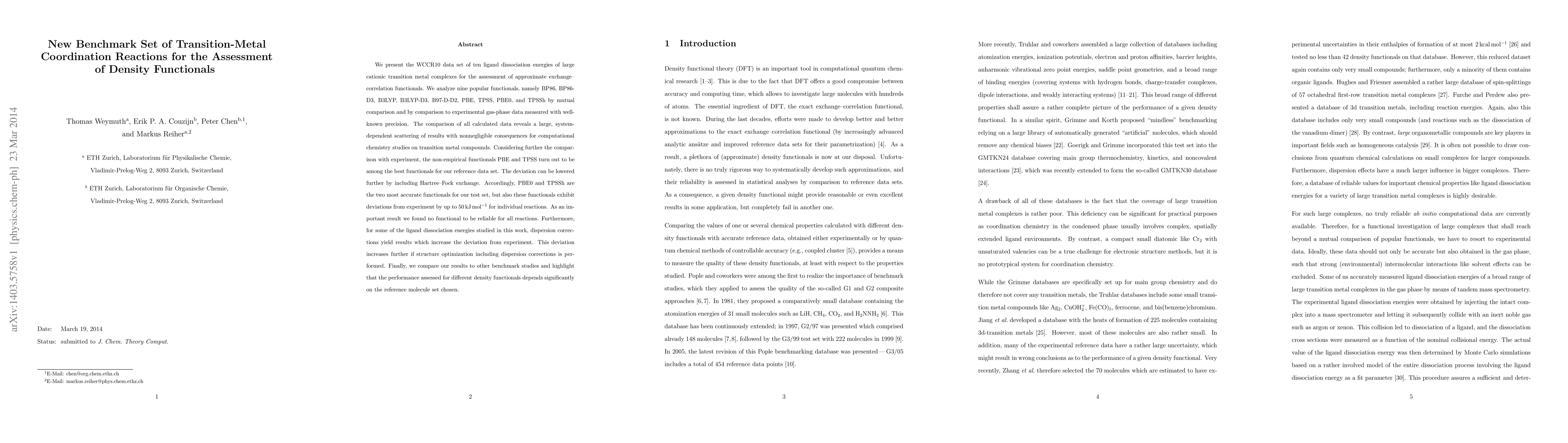 A new benchmark set of transition-metal coordination reactions is presented to assess approximate exchange-correlation functionals, highlighting the limitations of current methods.