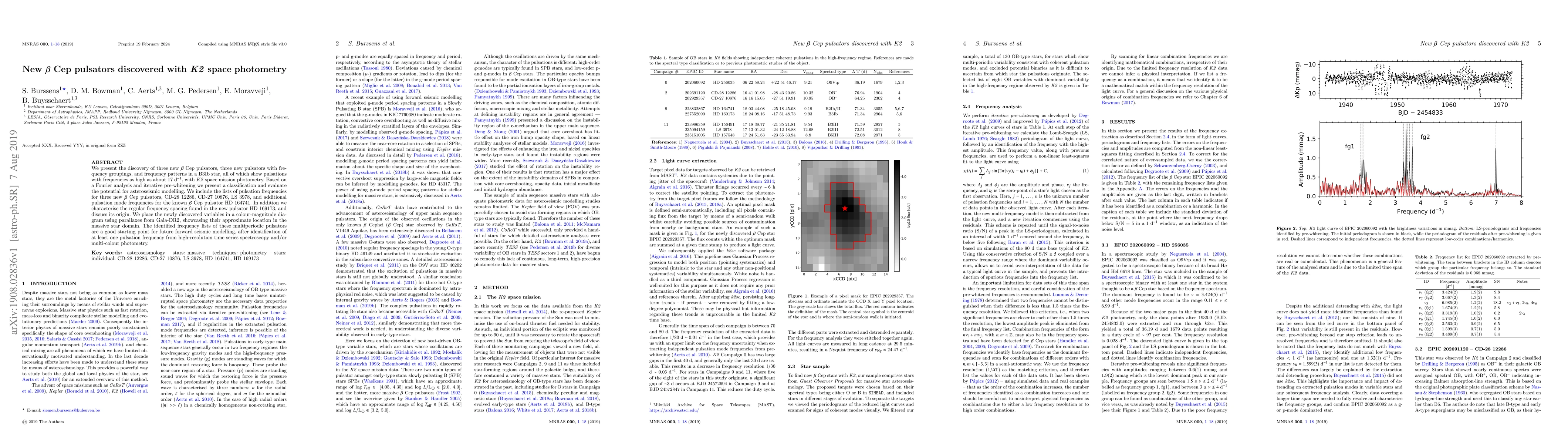 This paper reports the discovery of three new β Cep pulsators and additional pulsations in a B3Ib star using K2 space mission photometry, identifying high-frequency pulsations up to 17 d$^{-1}$. The study provides frequency lists and discusses potential for asteroseismic modeling, positioning the new pulsators in the colour-magnitude diagram.