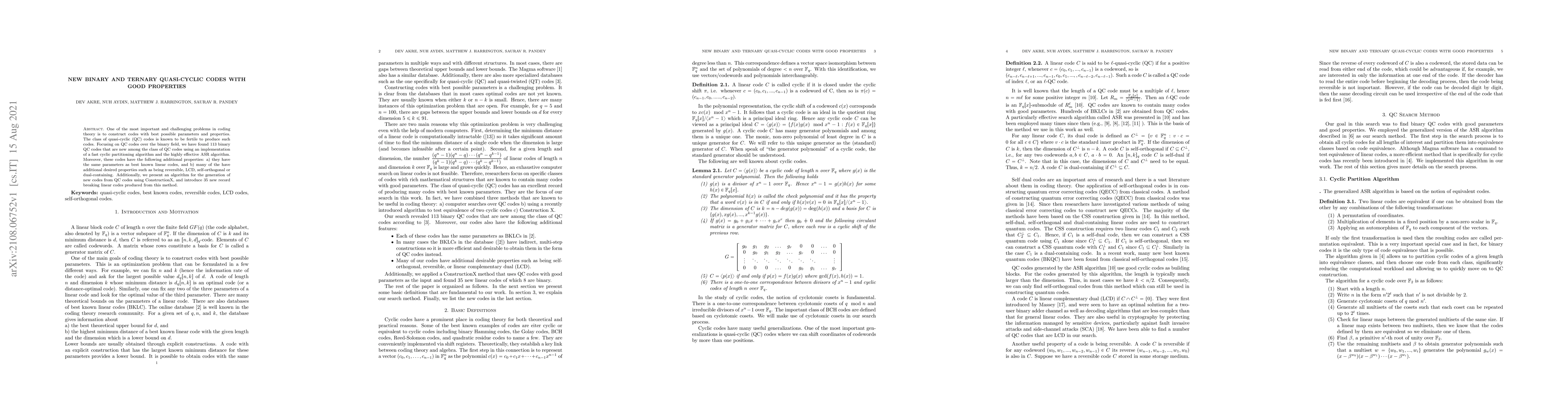 Researchers developed 113 new binary quasi-cyclic codes with optimal parameters, some with additional desirable properties like reversibility and self-orthogonality. These codes were generated using a fast partitioning algorithm and ConstructionX.