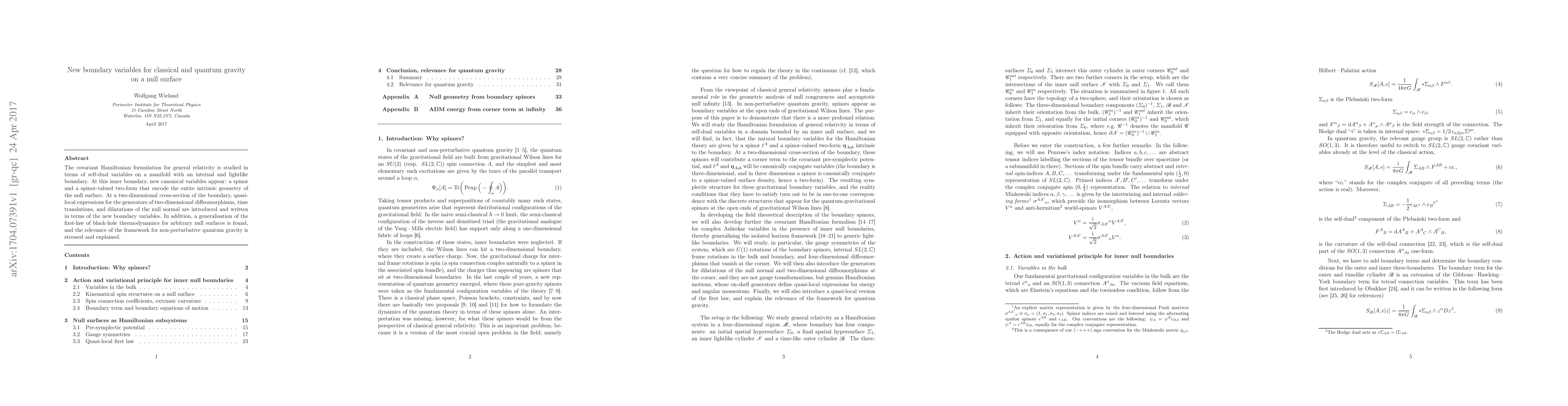 The covariant Hamiltonian formulation for general relativity is studied in terms of self-dual variables on a manifold with an internal and lightlike boundary. At this inner boundary, new canonical variables appear: a spinor and a spinor-valued two-form that encode the entire intrinsic geometry of the null surface. At a two-dimensional cross-section of the boundary, quasi-local expressions for the generators of two-dimensional diffeomorphisms, time translations, and dilatations of the null normal are introduced and written in terms of the new boundary variables. In addition, a generalisation of the first-law of black-hole thermodynamics for arbitrary null surfaces is found, and the relevance of the framework for non-perturbative quantum gravity is stressed and explained.