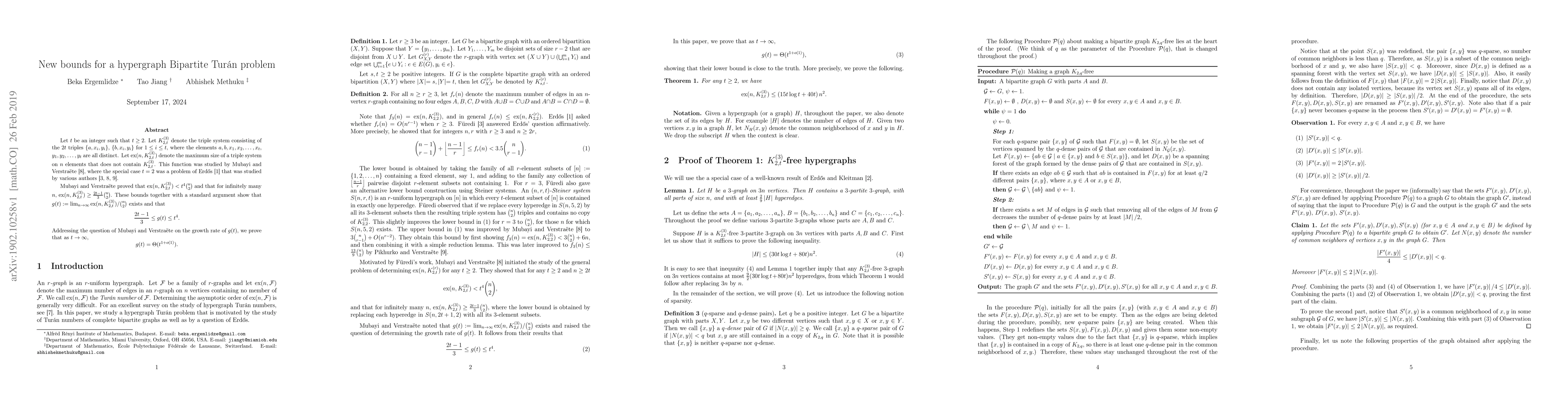Researchers improve bounds for a hypergraph problem, finding that as t approaches infinity, the growth rate of g(t) is approximately proportional to t^{1+o(1)}.