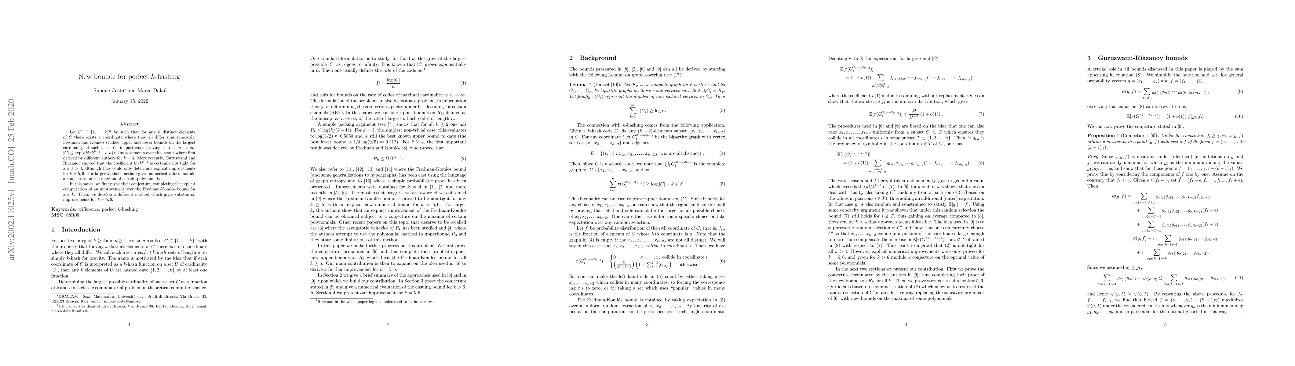 This paper proves the conjecture of Guruswami and Riazanov, providing explicit improvements over the Fredman-Komlós bound for perfect $k$-hashing for any $k$. It also introduces a new method yielding significant enhancements specifically for $k=5,6$.