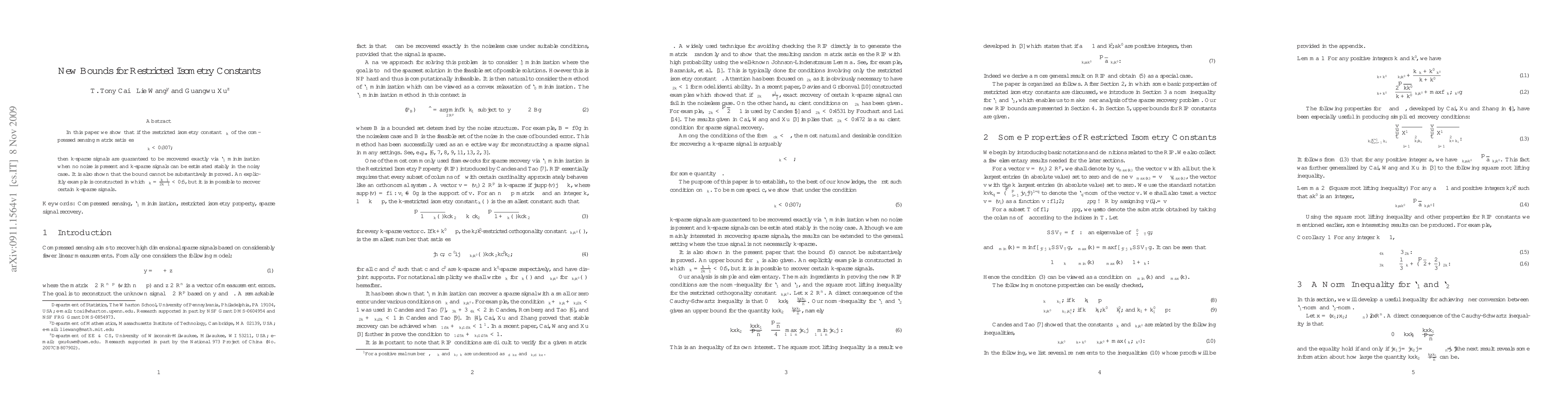 Researchers found that if a compressed sensing matrix has a restricted isometry constant less than 0.307, it can guarantee exact recovery of $k$-sparse signals without noise and stable estimation with noise. This bound cannot be improved substantially.