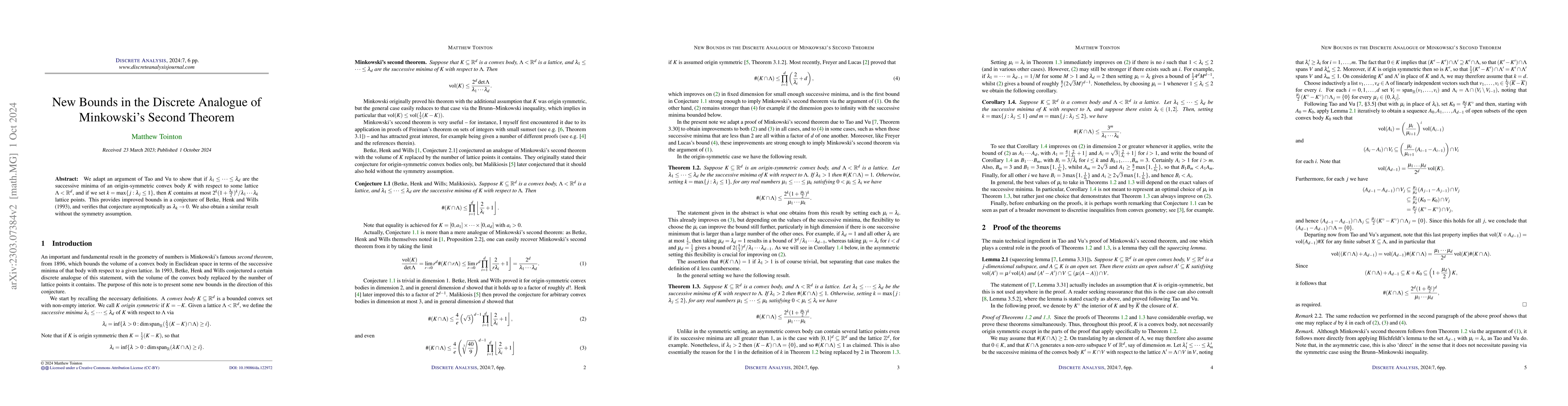 This paper establishes new bounds for the number of lattice points contained within an origin-symmetric convex body, improving upon a conjecture by Betke, Henk, and Wills. The authors adapt techniques from Tao and Vu to show that the maximum number of lattice points is given by a specific formula involving the successive minima of the body.