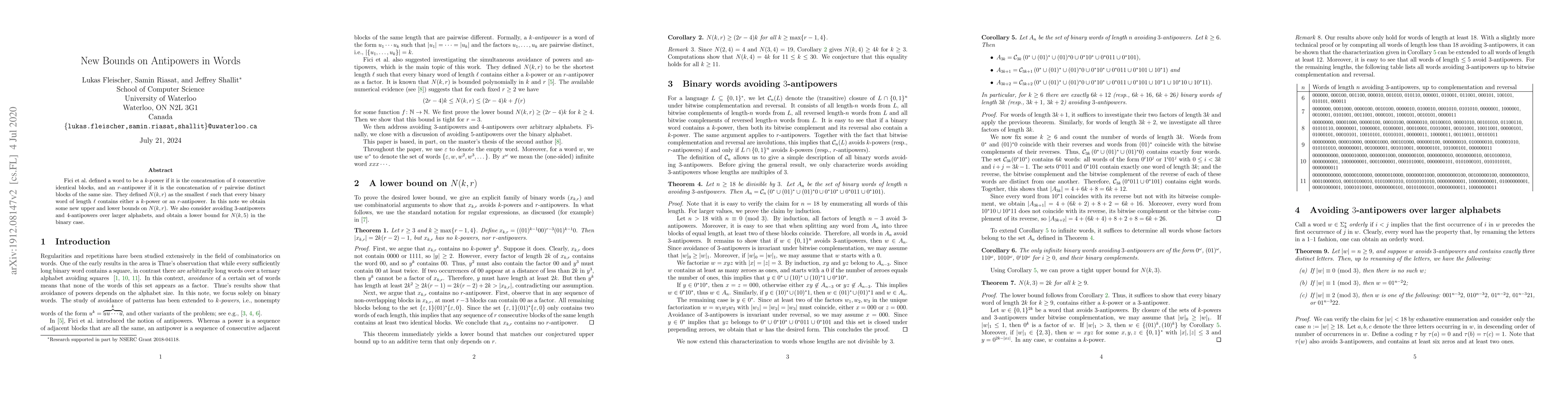 Fici et al. defined a word to be a k-power if it is the concatenation of k consecutive identical blocks, and an r-antipower if it is the concatenation of r pairwise distinct blocks of the same size. They defined N (k, r) as the smallest l such that every binary word of length l contains either a k-power or an r-antipower. In this note we obtain some new upper and lower bounds on N (k, r). We also consider avoiding 3-antipowers and 4-antipowers over larger alphabets, and obtain a lower bound for N (k, 5) in the binary case.