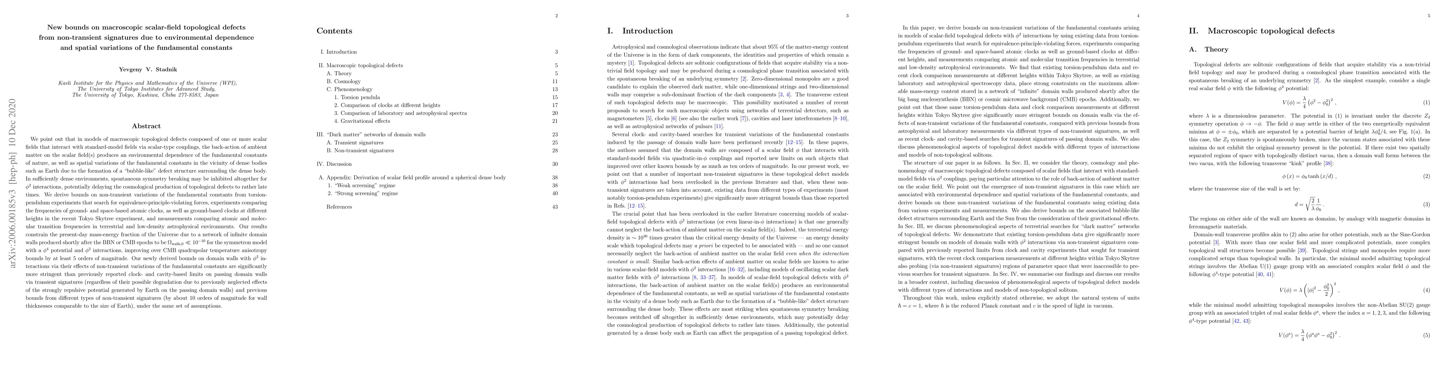 New research sets bounds on macroscopic topological defects caused by environmental dependence and fundamental constant variations, improving existing limits by at least 5 orders of magnitude.