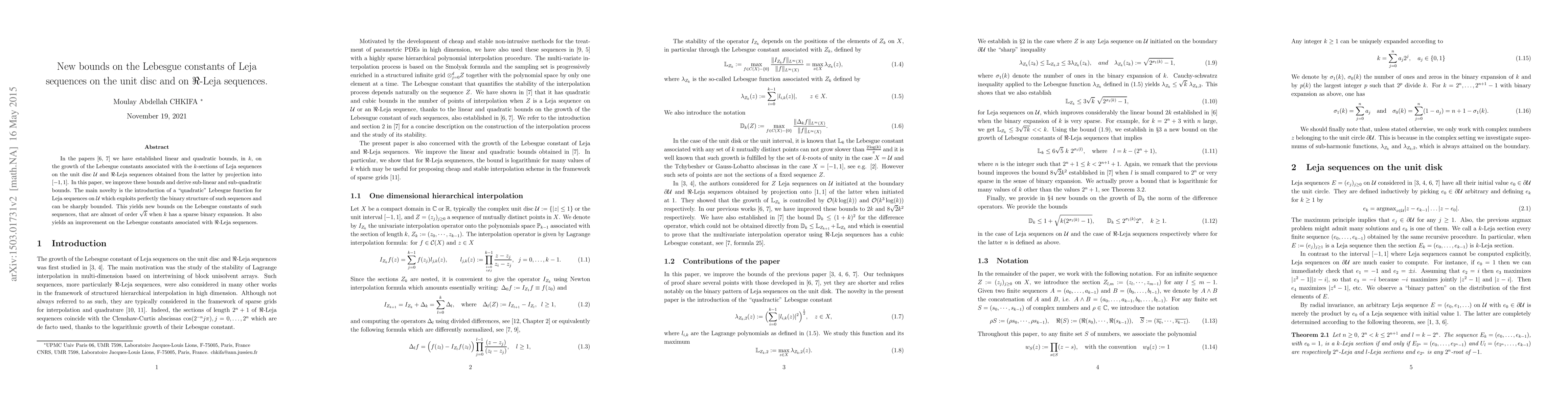 In the papers [6, 7] we have established linear and quadratic bounds, in $k$, on the growth of the Lebesgue constants associated with the $k$-sections of Leja sequences on the unit disc $\mathcal{U}$ and $\Re$-Leja sequences obtained from the latter by projection into $[-1, 1]$. In this paper, we improve these bounds and derive sub-linear and sub-quadratic bounds. The main novelty is the introduction of a "quadratic" Lebesgue function for Leja sequences on $\mathcal{U}$ which exploits perfectly the binary structure of such sequences and can be sharply bounded. This yields new bounds on the Lebesgue constants of such sequences, that are almost of order $\sqrt{k}$ when $k$ has a sparse binary expansion. It also yields an improvement on the Lebesgue constants associated with $\Re$-Leja sequences.
