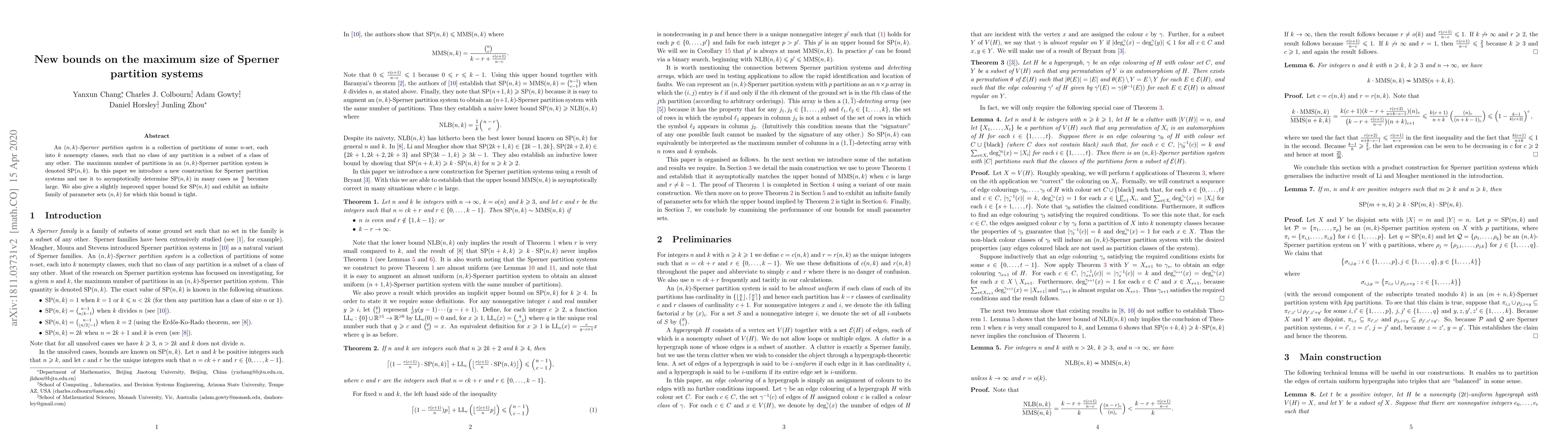 This paper introduces a new construction for Sperner partition systems to asymptotically determine $\mathrm{SP}(n,k)$ as $\frac{n}{k}$ becomes large, providing a slightly improved upper bound and showing its tightness for a specific infinite family of $(n,k)$ parameter sets.