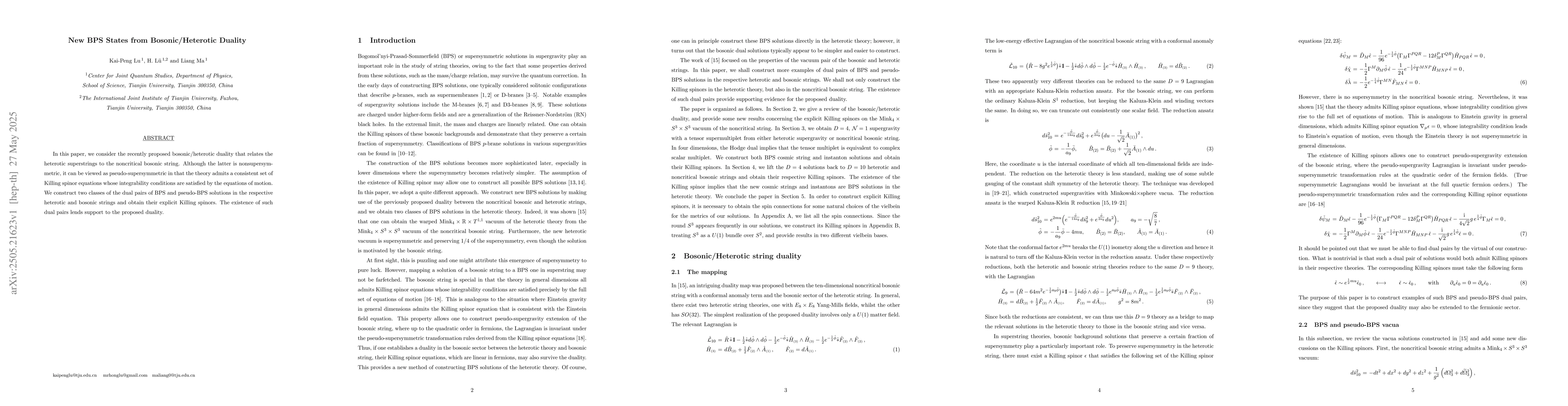 The paper explores the bosonic/heterotic duality, constructing dual pairs of BPS and pseudo-BPS solutions in heterotic and bosonic strings, and finding explicit Killing spinors.