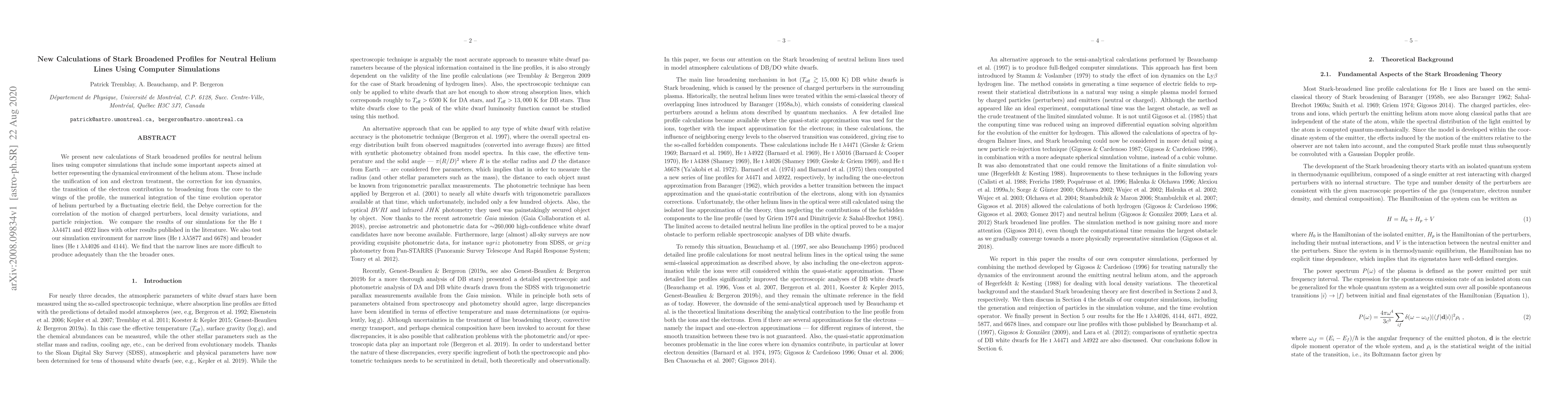 This paper presents new computer simulation calculations for Stark broadened profiles of neutral helium lines, incorporating advanced methods to better represent the dynamic environment. The results for He I lines at 4471, 4922, 5877, 6678, 4026, and 4144 nm are compared with literature, showing that narrow lines are harder to simulate accurately than broader ones.