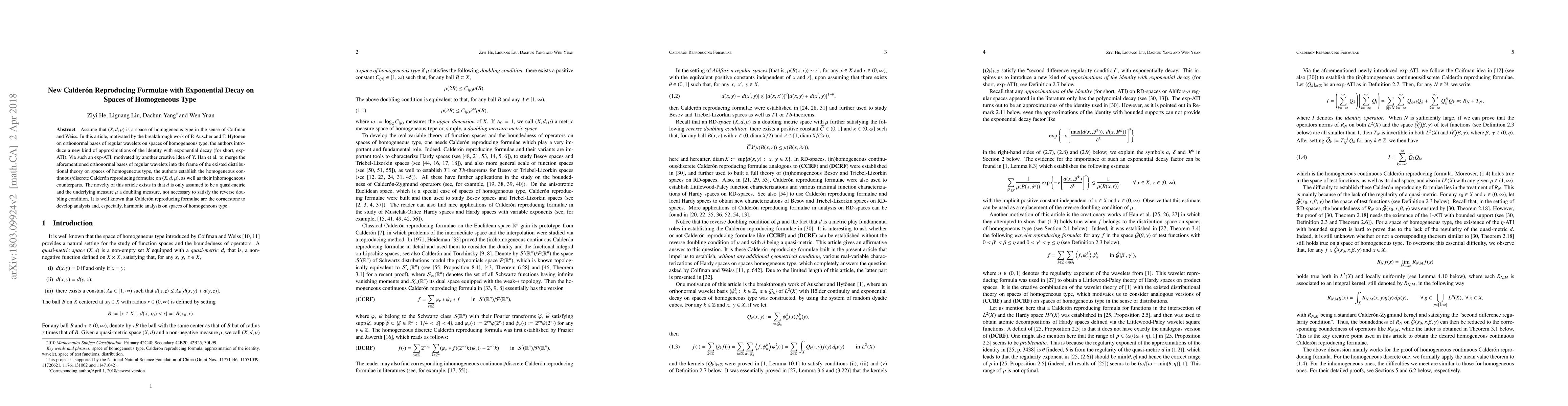 This paper develops new Calder\'on reproducing formulae on spaces of homogeneous type using approximations of the identity with exponential decay. It relaxes the conditions on the metric and measure, allowing broader applicability beyond traditional settings.