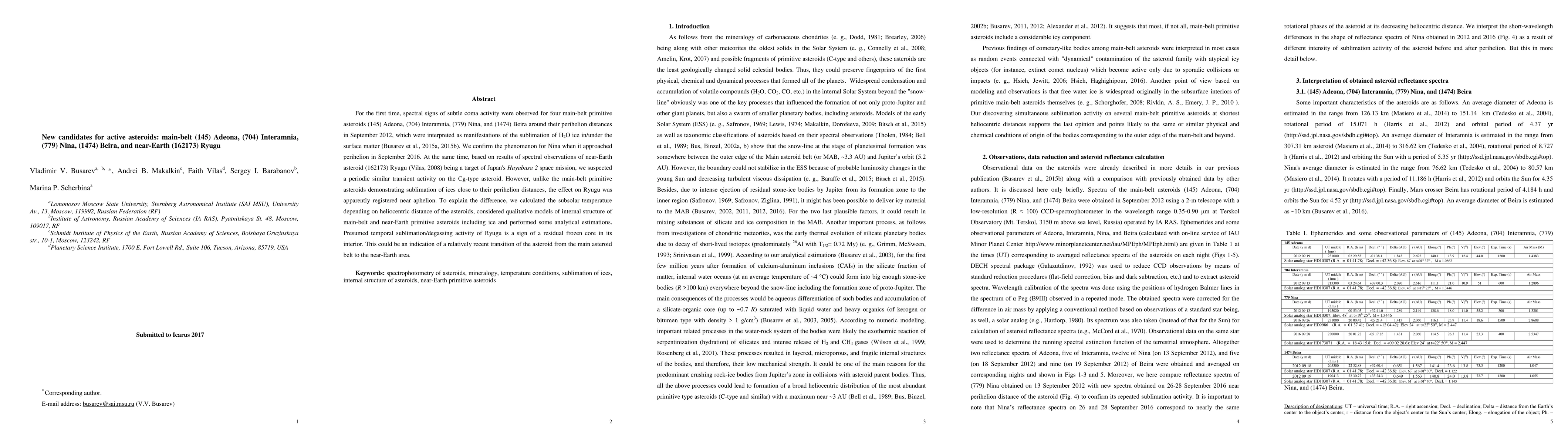 Asteroid scientists discovered subtle coma activity on four main-belt asteroids and found a possible frozen core in near-Earth asteroid Ryugu, suggesting its recent transition from the asteroid belt to Earth's orbit.