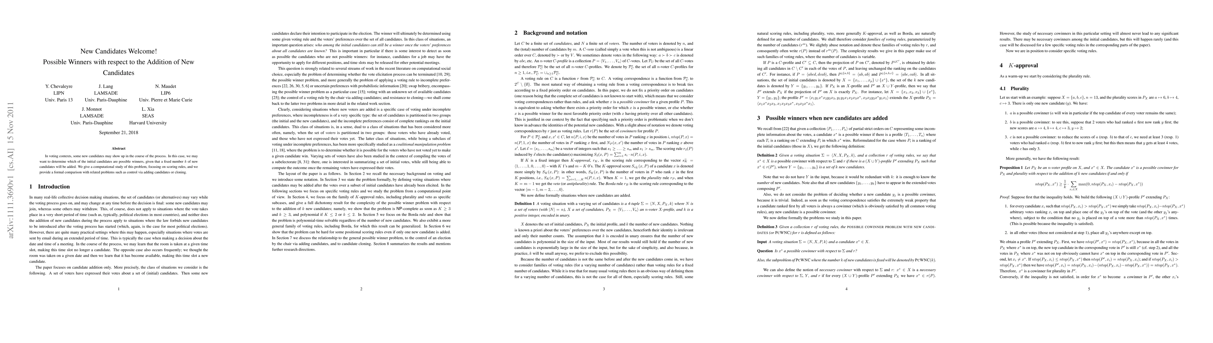 This paper explores the impact of introducing new candidates in voting systems, determining which initial candidates could potentially win under the addition of a fixed number $k$ of new candidates. The study focuses on scoring rules and compares this scenario with related problems like candidate control and cloning.