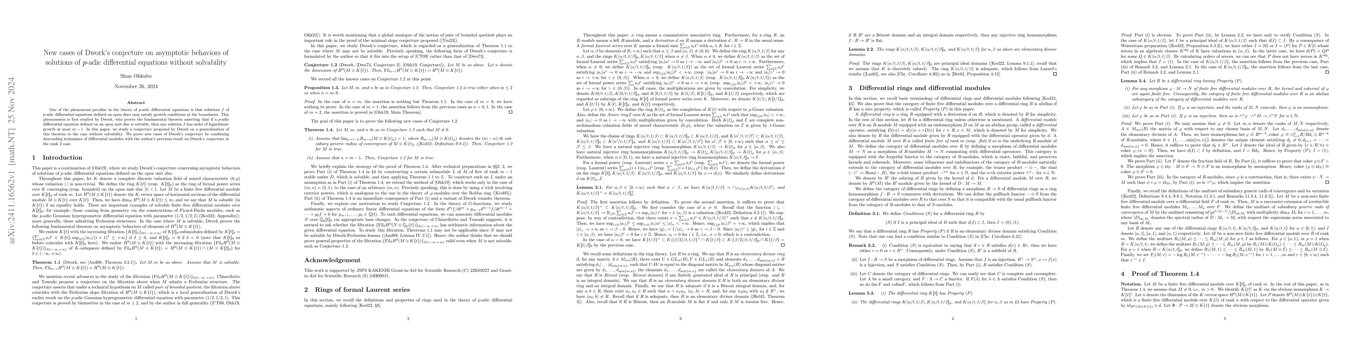 This paper investigates Dwork's conjecture regarding the growth conditions of solutions to $p$-adic differential equations even when solvability is not guaranteed. The authors prove new instances of the conjecture using descending techniques and previous findings on rank $2$ cases.