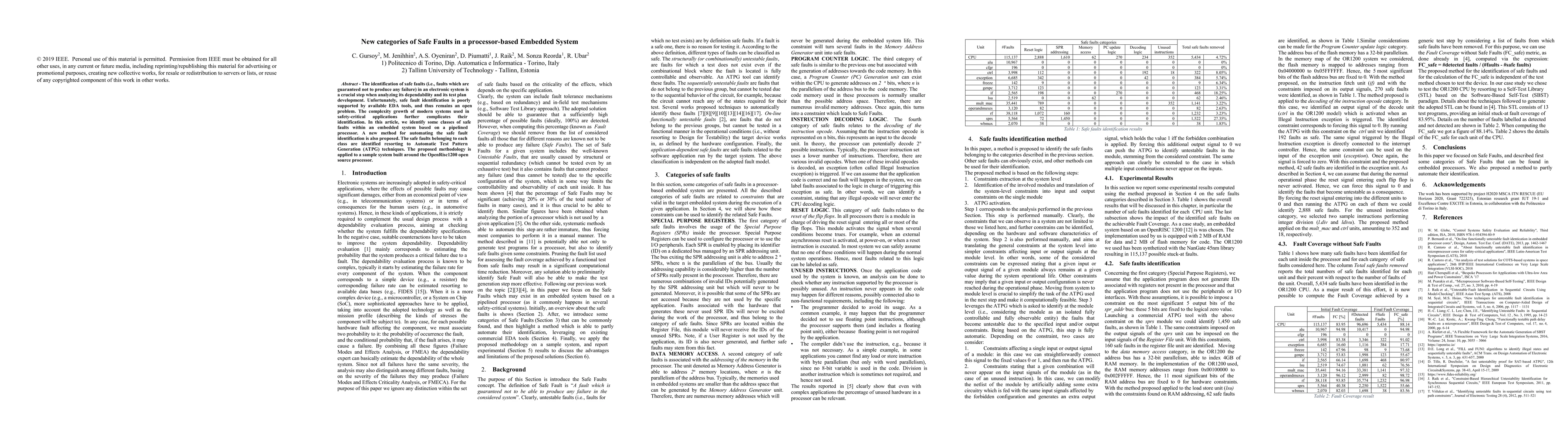 Researchers identify new categories of safe faults in embedded systems with piped processors, proposing a method to automate their identification using Automatic Test Pattern Generation techniques.