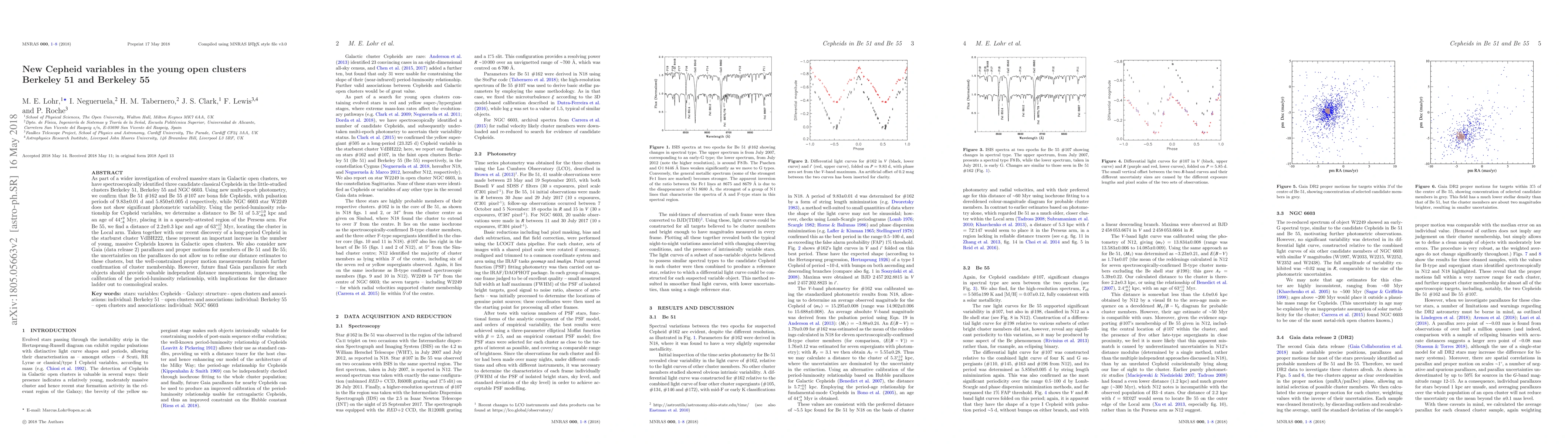 The study spectroscopically identified three candidate Cepheid variables in the open clusters Berkeley 51, Berkeley 55, and NGC 6603 using multi-epoch photometry and Gaia DR2 data.
