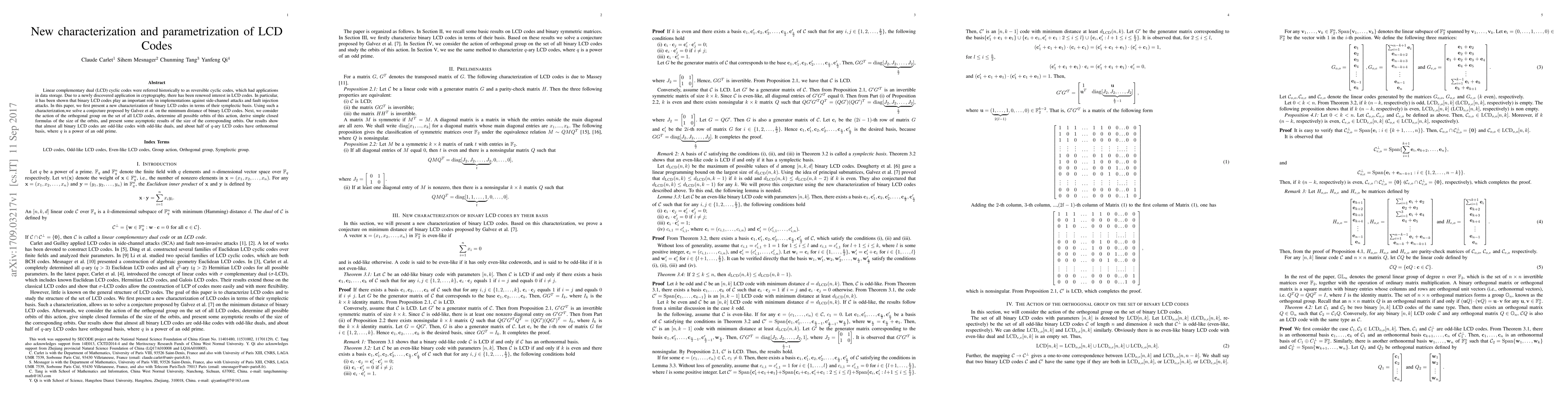 The paper presents a new characterization of binary LCD codes using their symplectic basis and analyzes the action of the orthogonal group on the set of all LCD codes.